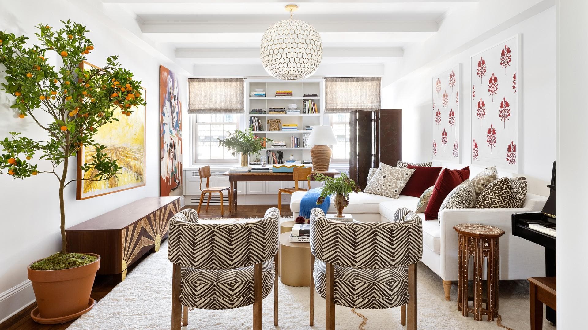 When interior designer Ariel Okin kicks off each project, she begins with a creative brief meeting, as is typical of her profession. There, she sits down with her client for hours to ascertain what it is they want from their impending project. “We really dive into what they love about inspiration images that they [pulled], what they don't love, [prospective] color palette, which textiles that we should be focusing on,” says Okin. In the kickoff meeting for a recent remodel on Riverside Drive, the aesthete uncovered a challenge: a couple in which she, a fashion veteran, loves vibrant textiles and patterns whereas he, a connoisseur of the film industry, prefers a neutral palette—”nothing too busy.”