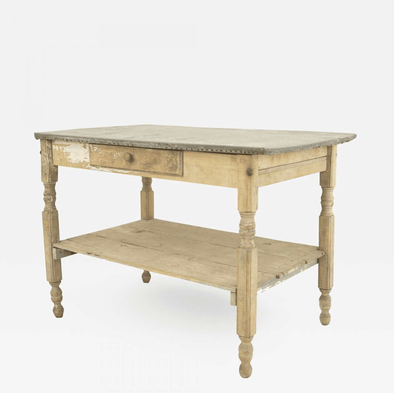 American Country Rustic Stripped Work Table with Zinc Top