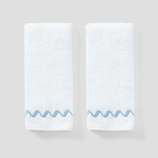 Wave-embroidered Hand Towels (pair)