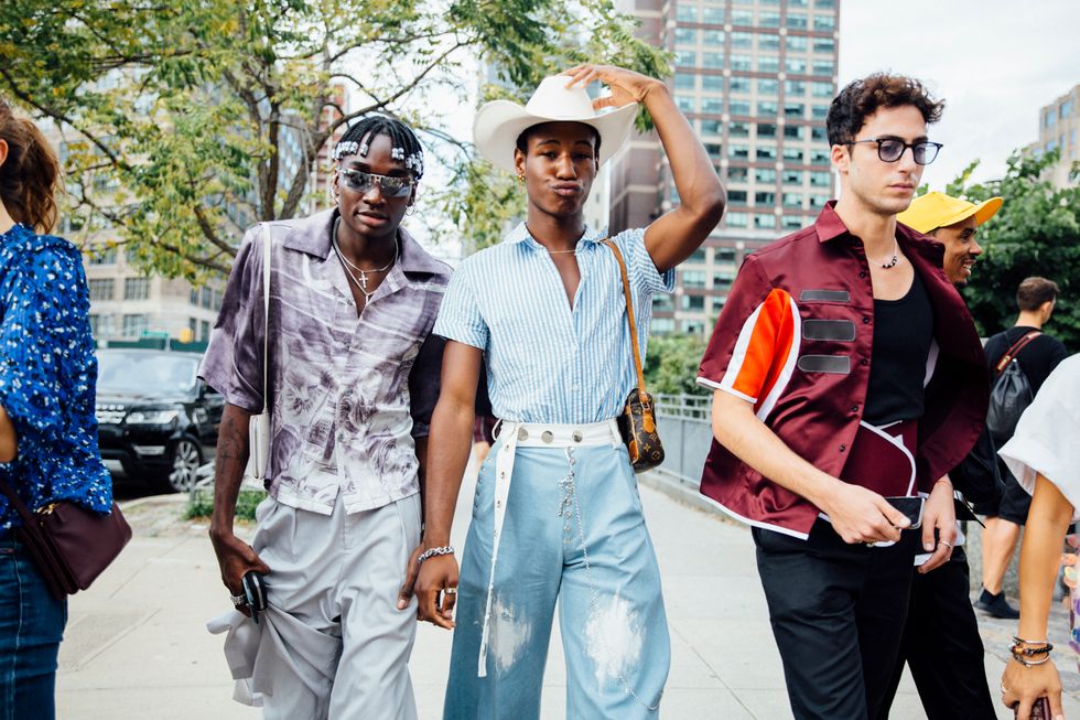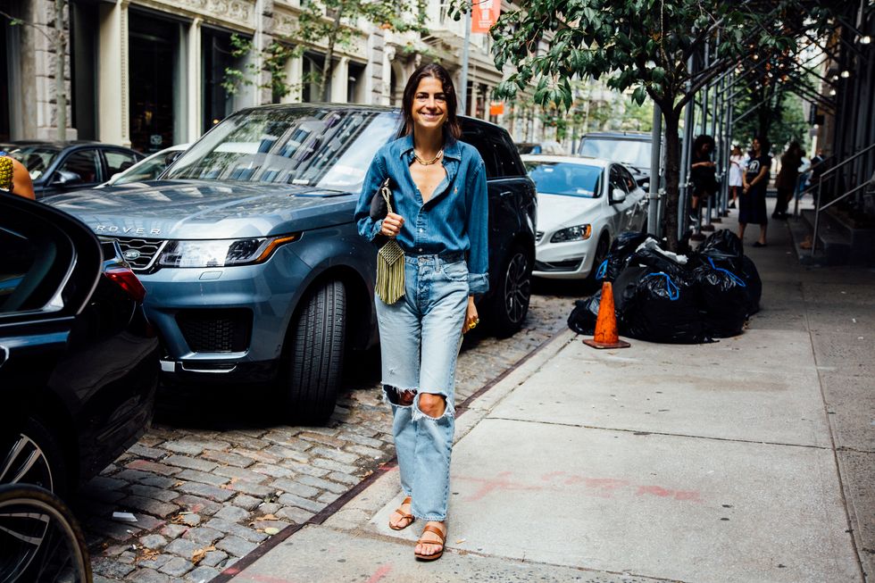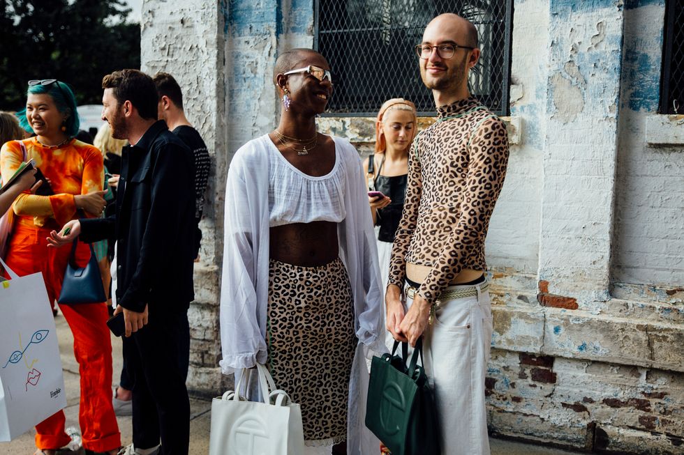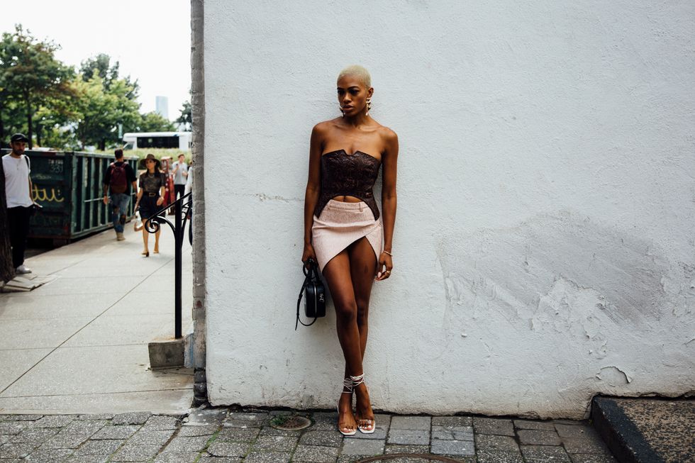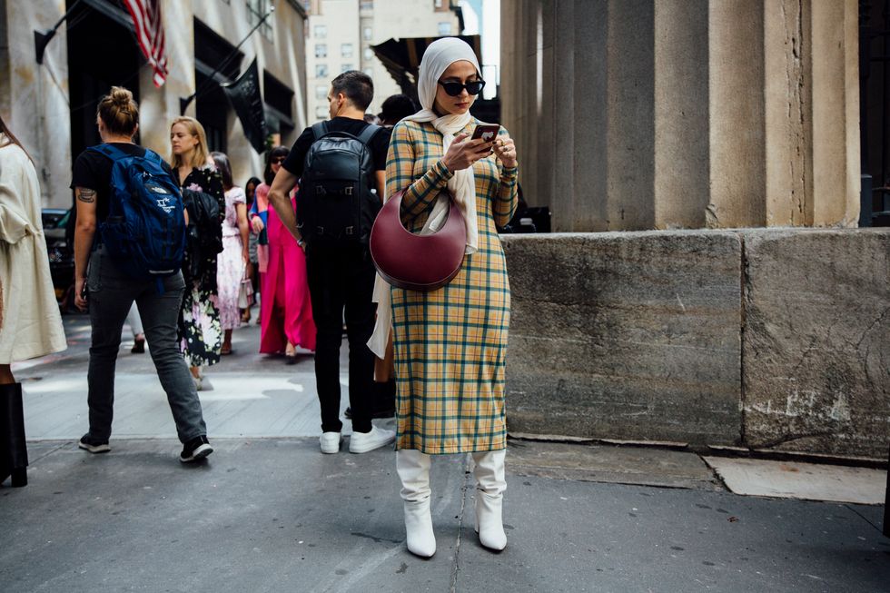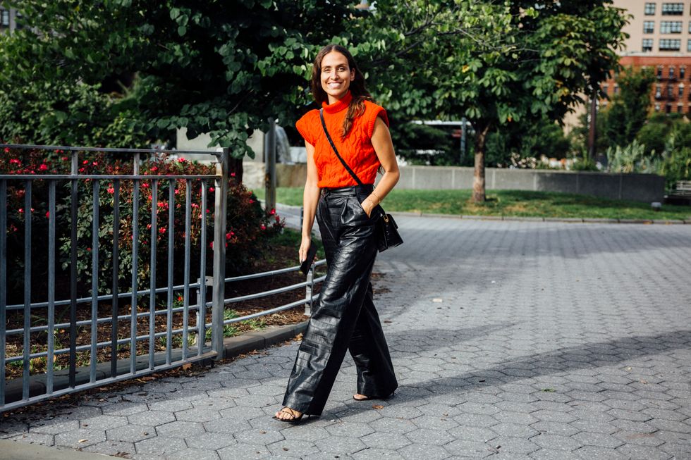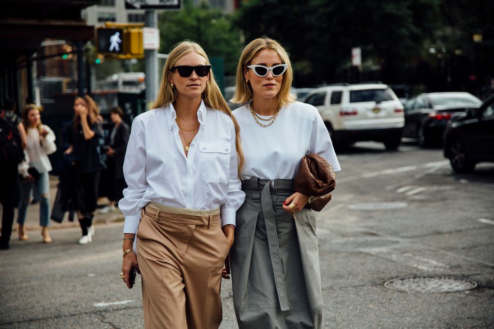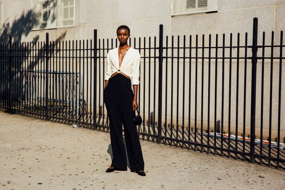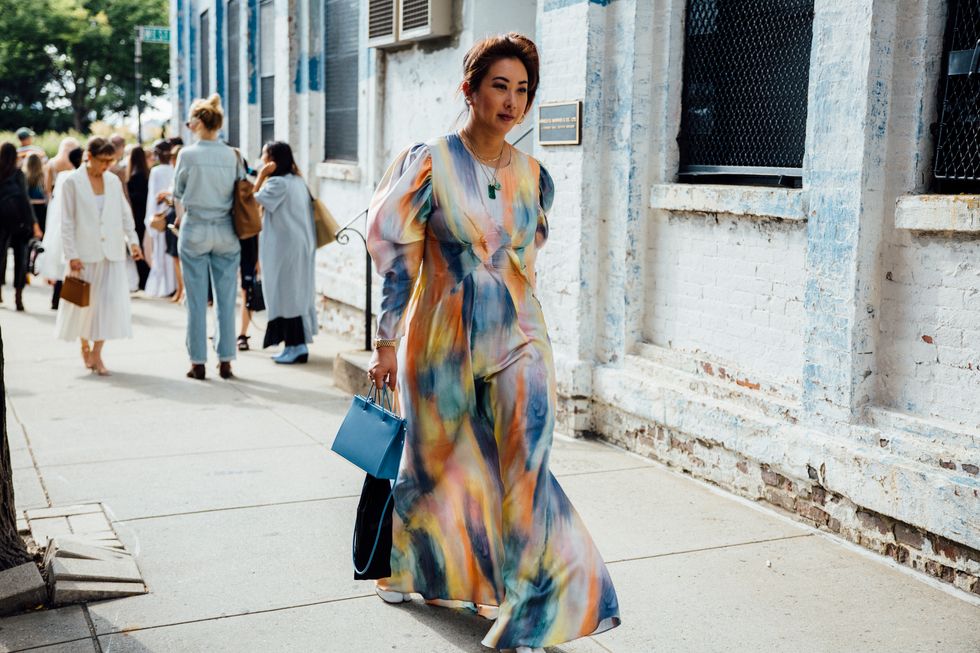 If there’s ever a place to gather inspiration for getting dressed in the morning, it’s outside a New York Fashion Week show. The first spring 2020 collections made their drizzly debut last Friday, and despite the weather, street style was anything but bleak. Show goers championed a new era of 1980s maximalism with sky-high shoulders, slick suiting, and shades of fuchsia and chartreuse. Shoewise, we’re seeing more flatforms, flared-base heels, and itty-bitty pumps (none of which are practical for the precariously cobblestone streets of Soho, but are gorgeous nevertheless). We also noticed more and more people dressing up their hair, adorning styles with statement clips, pins, and Jackie-O-esque scarves. Scroll through for our favorite street style looks from New York Fashion Week.
