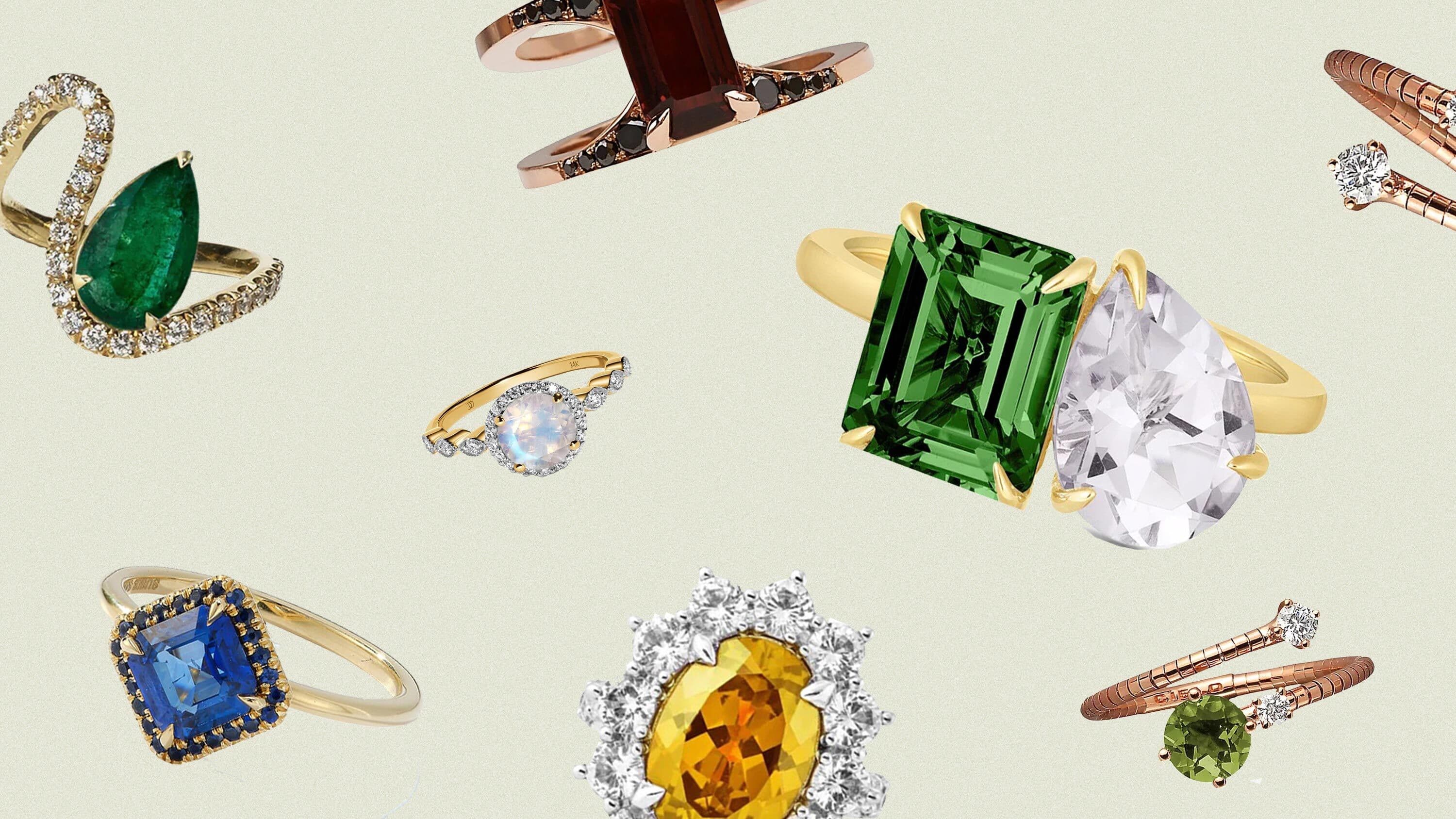 To get you inspired, here are 15 unique non-diamond and non-traditional engagement rings that feature a variety of gemstones, from moonstones and rubies to emeralds and quartz, each with its own beautiful and unique style and meaning.