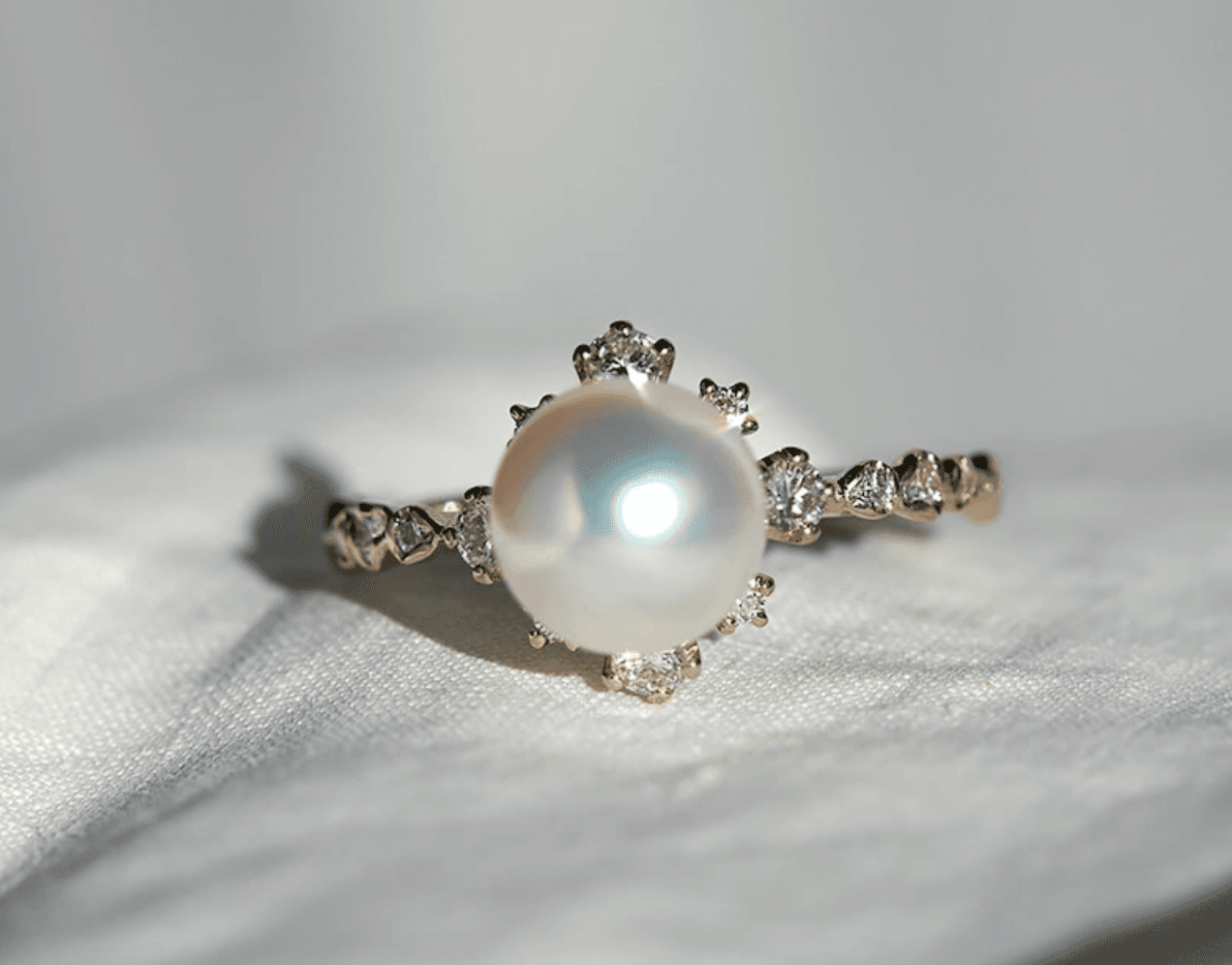 There is something so classy about a pearl engagement ring. It evokes timeless elegance and this Kataoka beauty has a unique pavé setting that showcases plenty of sparkle but the focus is still on the pearl.
