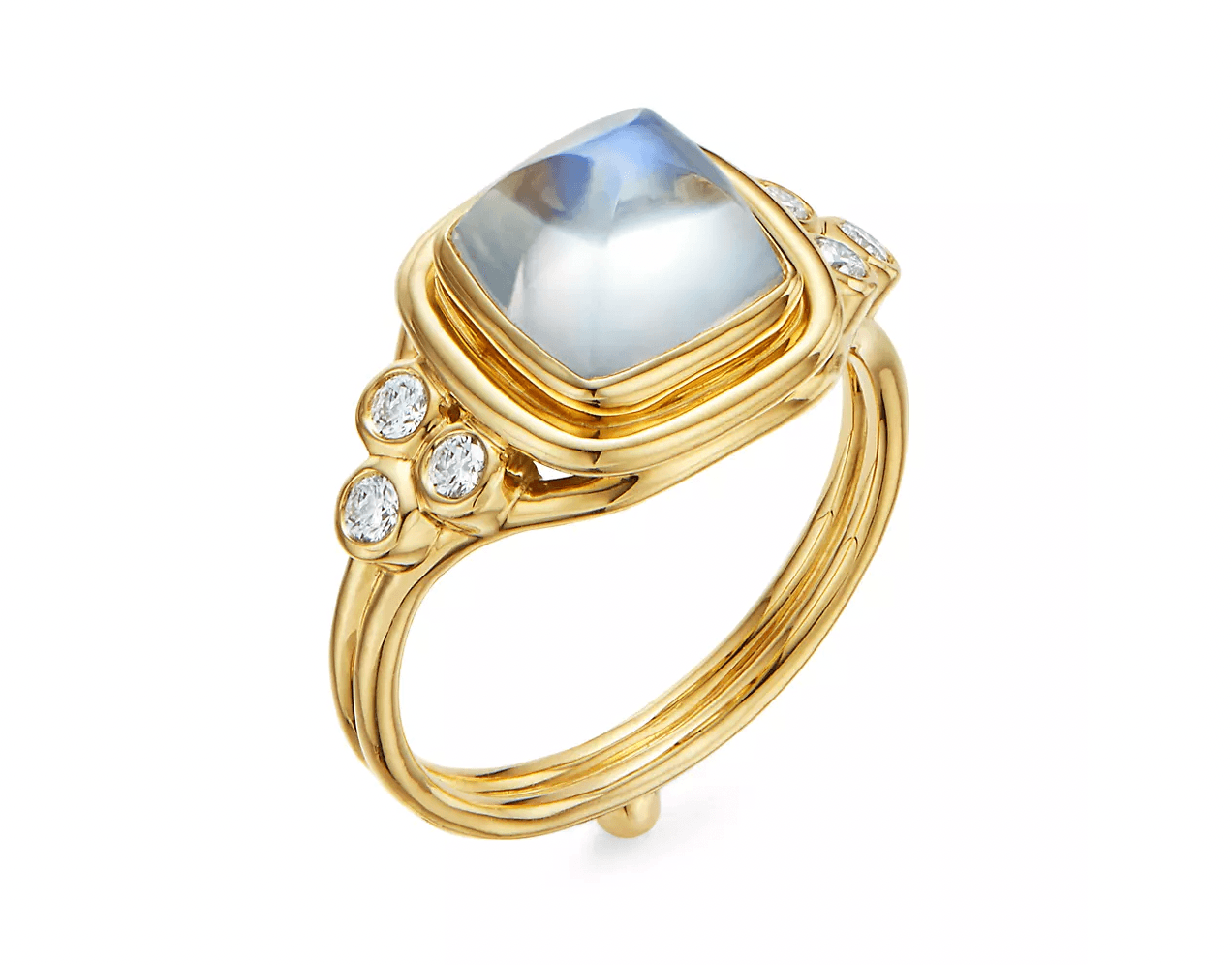 High 18K Yellow Gold, Moonstone & Diamond Classic Sugar Loaf Ring