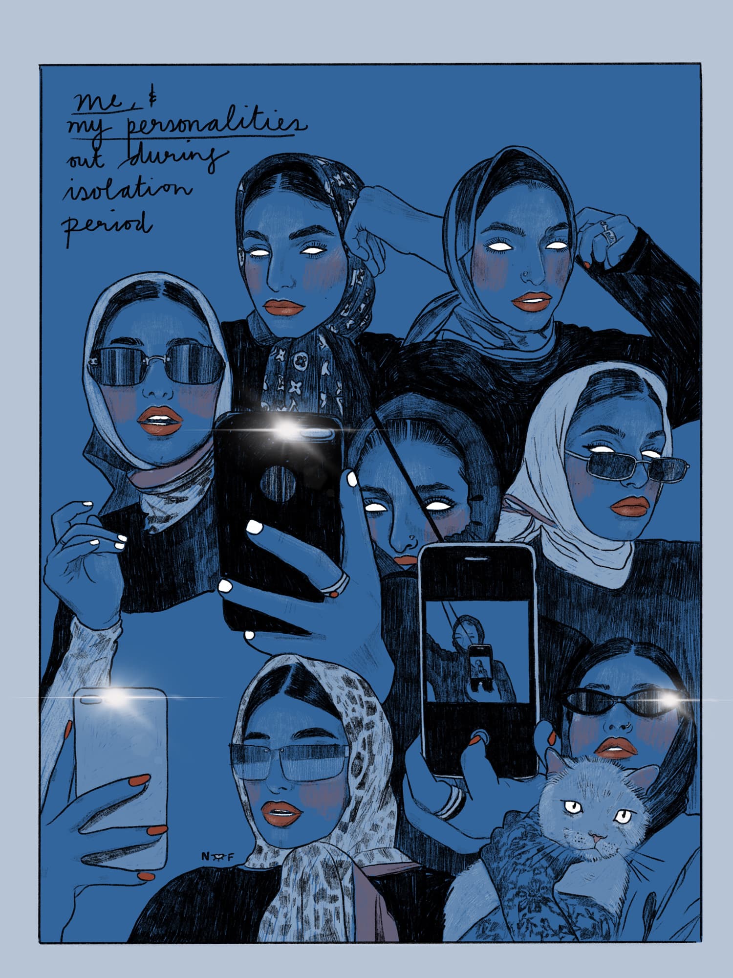 Illustration: Nour FlayhanAlongside Islamic ornamentation, the colors in her art are organic: the blue sky, an ever-present symbol of peace; the cedar of Lebanon, emblem of strength in this country, rooted in between Syria, Israel, and Palestine territories. This is an area still plagued by conflict due to religious and ethnic diversity and now faced with 2020’s health and the most severe economic crises in generations—even prior to the virus. “I’ve always felt connected to Lebanon, but in the past nine months, that connection deepened, as my country is trying to reclaim itself. I am with my people on the streets and use my art to spread the voices of the revolution. We are fighting for better days and against the elimination of the middle class. The situation is like a blaring alarm continually ringing in our ears.” Empowering others and sharing her story, Flayhan documents a visual journal through Instagram. In these “journal pages,” she captions her thoughts and conversations for others to align with in this essential new wave of a social movement.