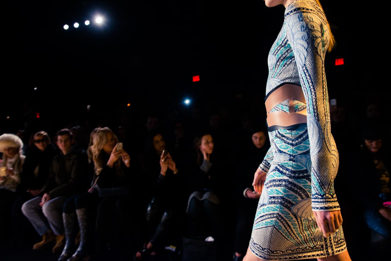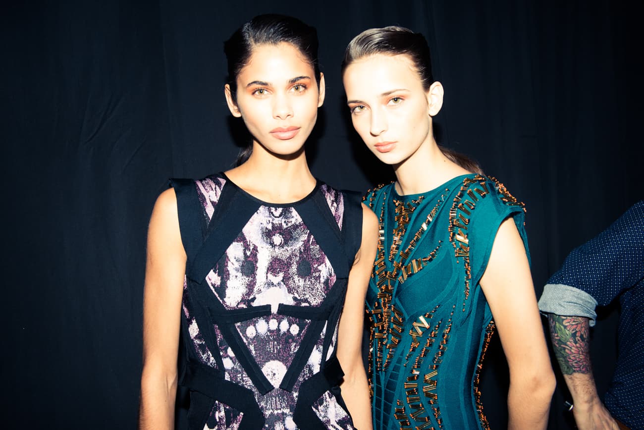 There’s something to be said for seamlessly merging fashion and art, and when it’s done right, it’s pretty much perfection. It was a recent trip to Barcelona that influenced Lubov and Max Azria’s Herve Leger Fall 2015 collection—we mean, who wouldn’t be inspired by the austere architecture of Gaudi’s La Sagrada Familia, the Mediterranean (because, beach!), tapas and the sun (we’re in a deep freeze here, guys)? The palette of personal photographs, taken by Lubov herself, printed and formed into a second skin, which made up the long-sleeved body-binding dresses while grommet details drew on the chiaroscuro effect (BTW, that translates to the dark angular shadows contrasted by harsh light) of the basilica’s façade. But credit the Azrias for keeping things controlled; updating styles from their archives in favor of brighter, more modest looks; as for the hair, it was just as gothic and curvilinear as the basilica that inspired it.