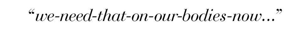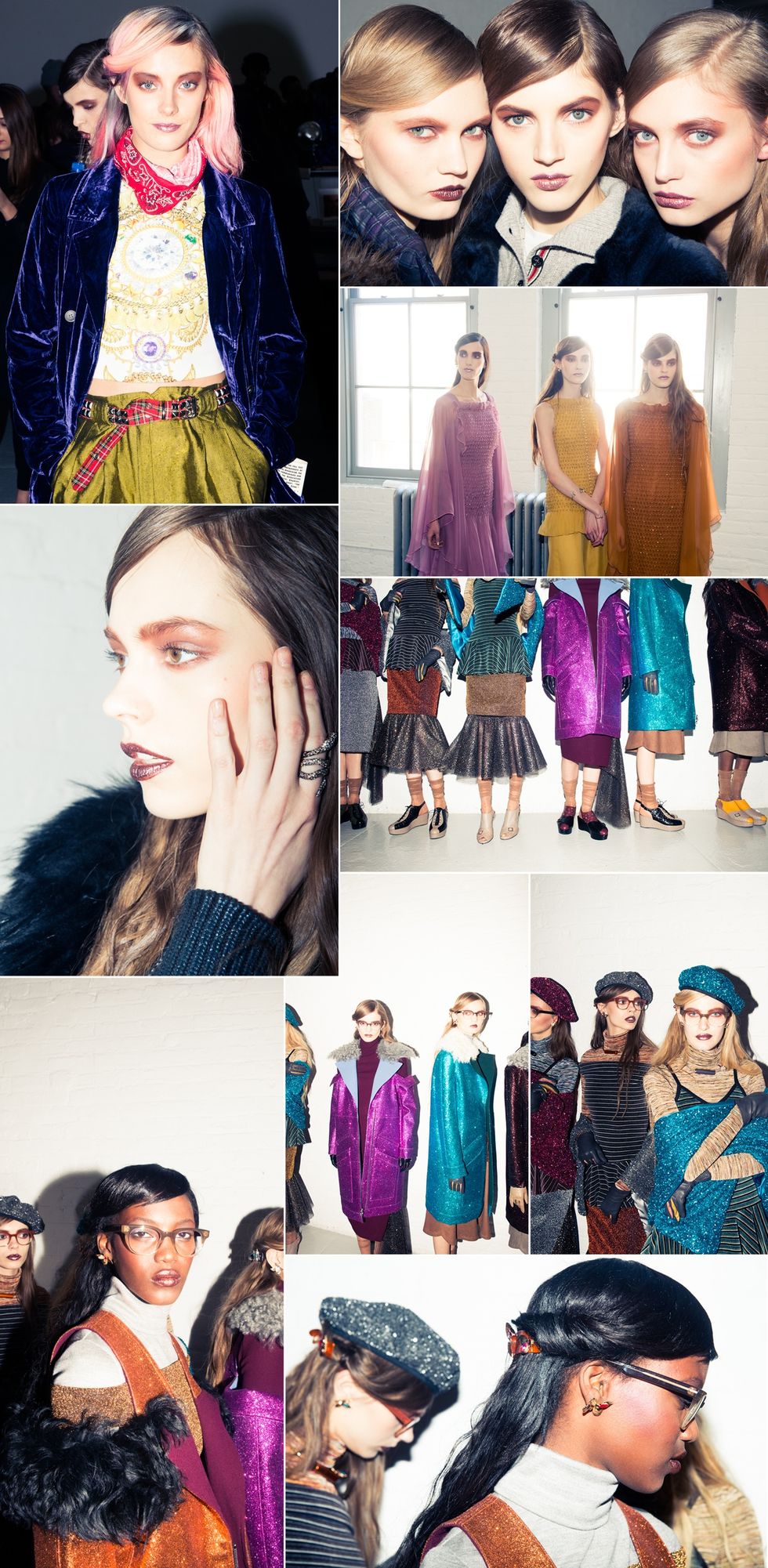 Fast forward to Prabal Gurung, aforementioned streaker and all; where we cozied up backstage pre-nakedness to the intricate Swarovski beadery (Gurung is just one of the many designers apart of the Swarovski Collective this season), scarlet folds of silk and peek-a-boo crops and cut-outs. Sunday saw the Delpozo show, which stole the spotlight of many an Instagram feed (namely ours) with the help of a certain, we-need-that-on-our-bodies-now quilted cape coat. Oh, and you better believe we'll be stalking those color-blocked chunky oxfords with a vengeance. Same goes for those crystal-studded hairclips and glitter shearling coats we spotted at Rodarte—that is, when we're not attempting to recreate those aubergine lids and shimmer-spackled lips for ourselves.
