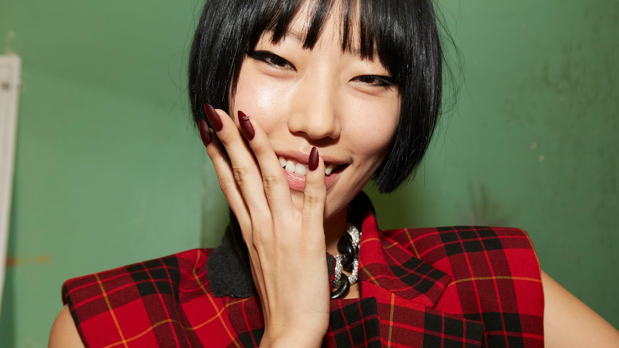 , it was most evident when it came to nails. Black, maroon, blood red, and cocoa nails were everywhere from Rodarte to Oscar de la Renta, in both almond claws and short and natural finishes. Whatever the shape, it didn’t matter as long as it looked Gothic and dark. So bid adieu to your minimalist, neutral mani, because dark, moody nails are here to stay.