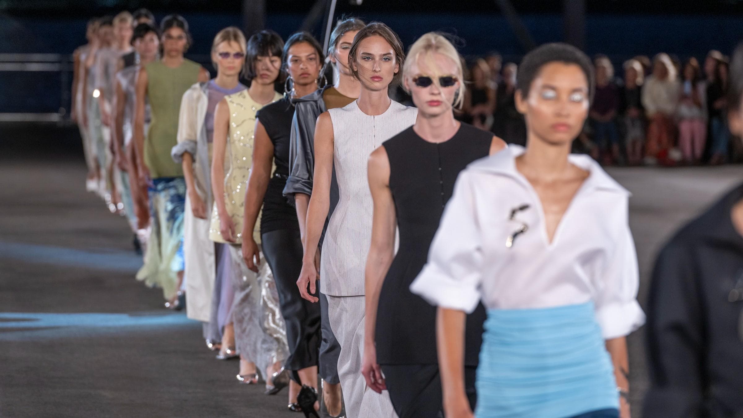 Photo: Madison VoelkelAnother prolific idea this season: visible underwear. Eckhaus Latta let a bikini-cut pair show through a mesh-like maxi skirt.