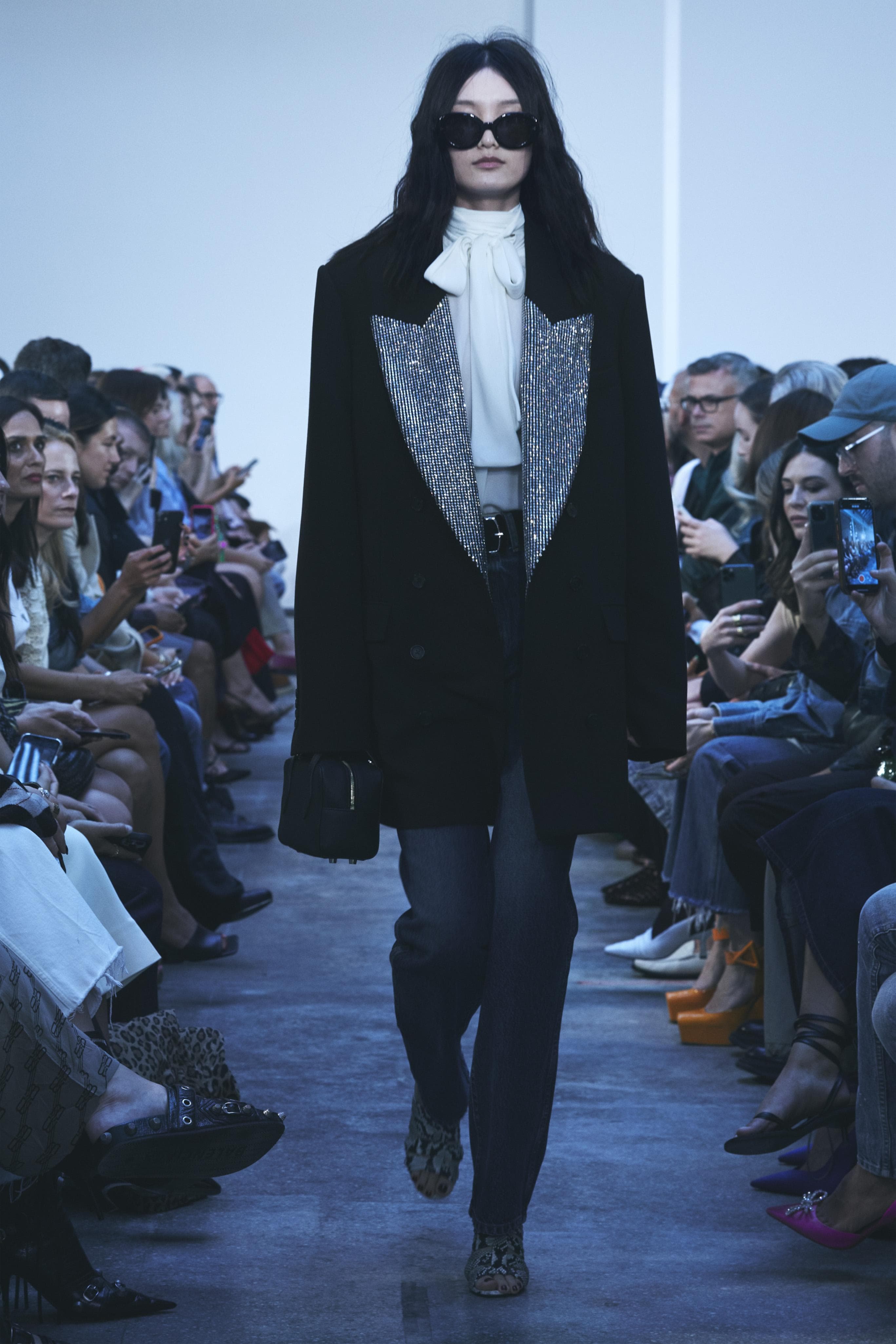 Photo: GoRunwayDespite the overwhelming Y2K energy surrounding low rise pants, designers like Amy Smilovic at Tibi proved that this rise can, in fact, be sophisticated. Take a note from their book, and err towards a looser silhouette and a monochromatic palette.
