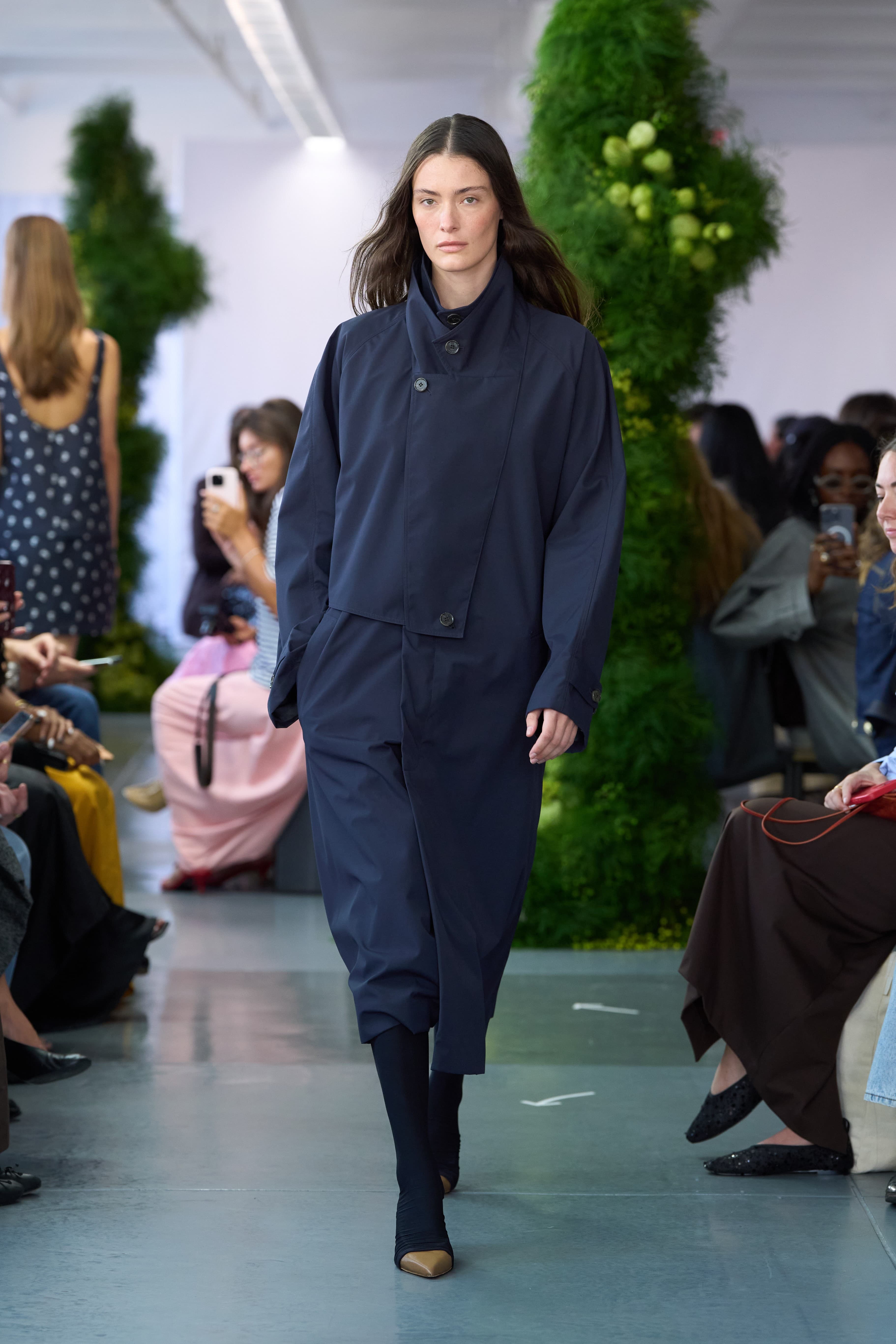 Khaite Spring/Summer 2026 Hanna Tveite / Khaite“Bomber jackets have been a mainstay on the runways for many seasons now, but for Spring/Summer 2026, necklines got increasingly higher. At Altuzarra, a black leather bomber with a great big upturned collar was zipped right up under the chin, as was a shearling-lined sand colored version at Khaite. At Tibi, drill cotton bombers gave things a lighter feel, as did the high-necked trenches offered in Khaki and Navy.” – Ella O’Keeffe, Senior Fashion Editor
