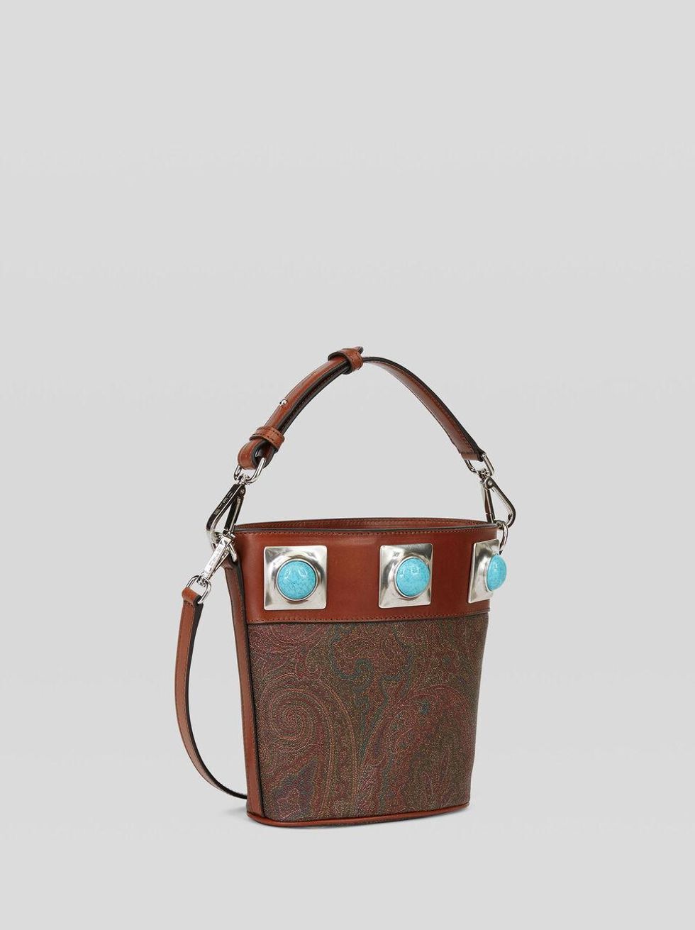 Mini Paisley Crown Me Bucket Bag with Turquoise Studs