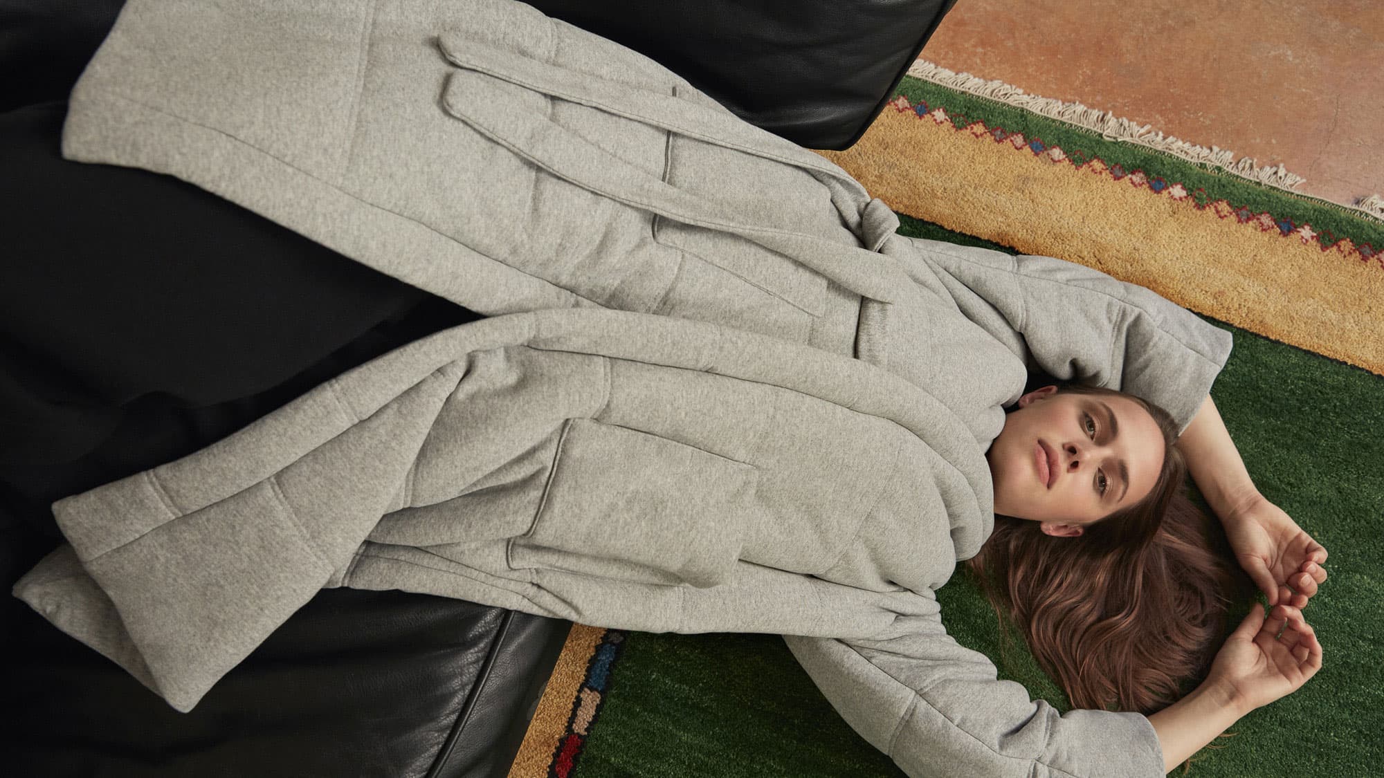 Zhou elaborates, “The home is a place where you’re with your loved ones—your partner, your roommate, your children, your pet, or you’re inviting your friends over. It’s a space for you to really be yourself. When customers get home, they’re able to change out of their outside clothes, and all of a sudden, they’re in a different mental state. It’s very intentional for them to feel more in control than [when] you’re just getting bumped around by outside forces.” We can only hope that more brands take as much care with our emotional and physical well-being in the future. Until then, we’ll be purchasing ourselves (and a friend) a Homecoat and staying inside until spring.