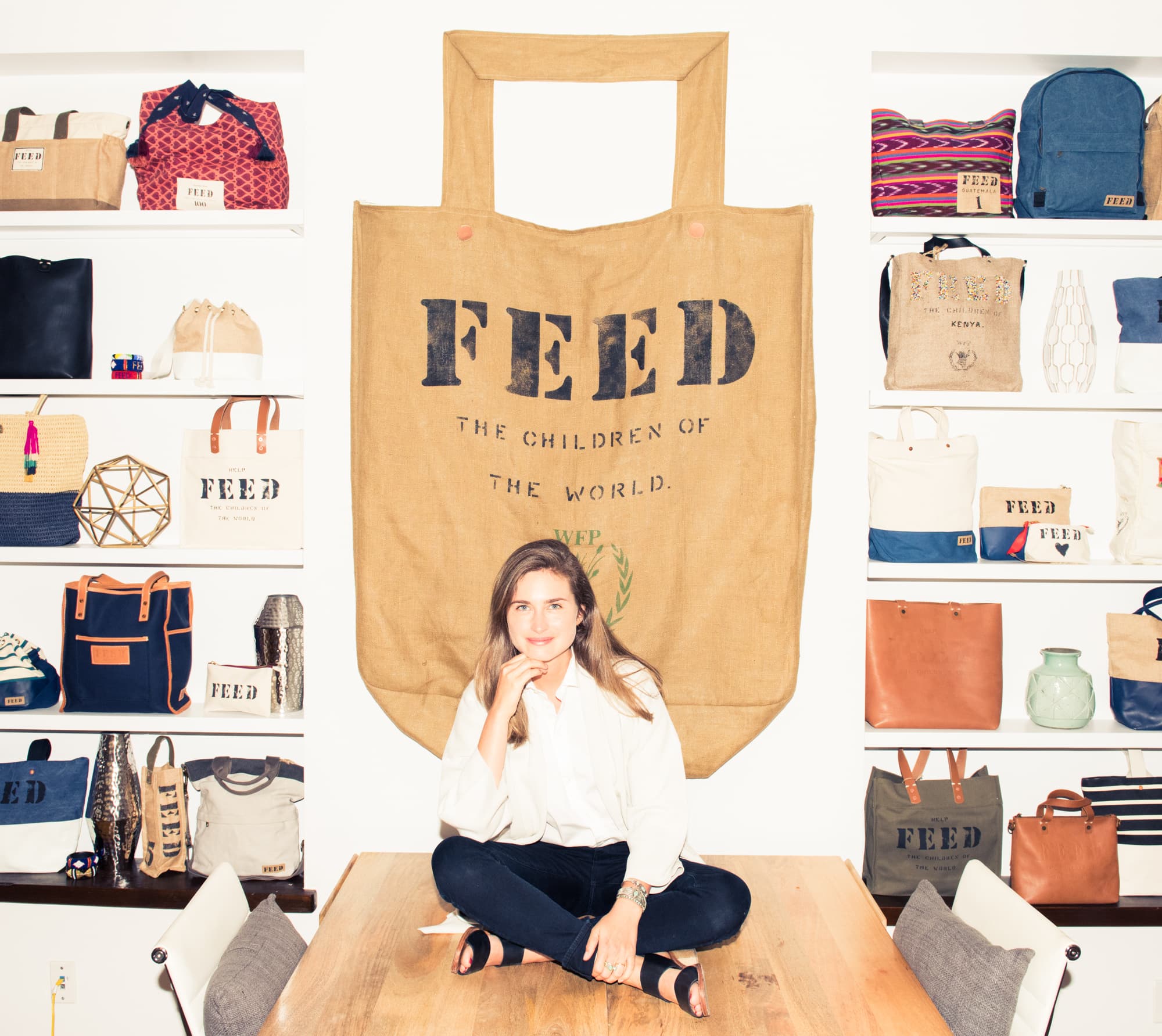“I loved design. I had been modeling and was exposed to the fashion industry, and I was also using breaks from school to take classes at Parson’s and Central Saint Martin’s. I was debating what career path to take, and I had the ‘aha moment’ for the first FEED bag to combine both of those passions. I want to give back and engage others in the fight to end hunger while incorporating design and fashion. The first FEED bag feeds one child in school for one year. We started selling that in 2007. When I graduated from college, I didn’t get a job because I wanted to see if I could make this FEED thing happen, even if it’s just this first order of bags. Amazon purchased the first order of 500 bags and set up this whole boutique page that told the story and the mission of FEED and was so wonderful. The design of the bag, using burlap and natural materials to harken back to the cause, is inspired by the bags of food that I saw being distributed around the world to schools. We’ve grown organically from there. Nine years later, we’ve done partnerships with the likes of Target, Clarins, West Elm, an array of companies. To date, through mainly bag purchases, we’ve been able to raise over 94 million meals for kids around the world and for families here in America.