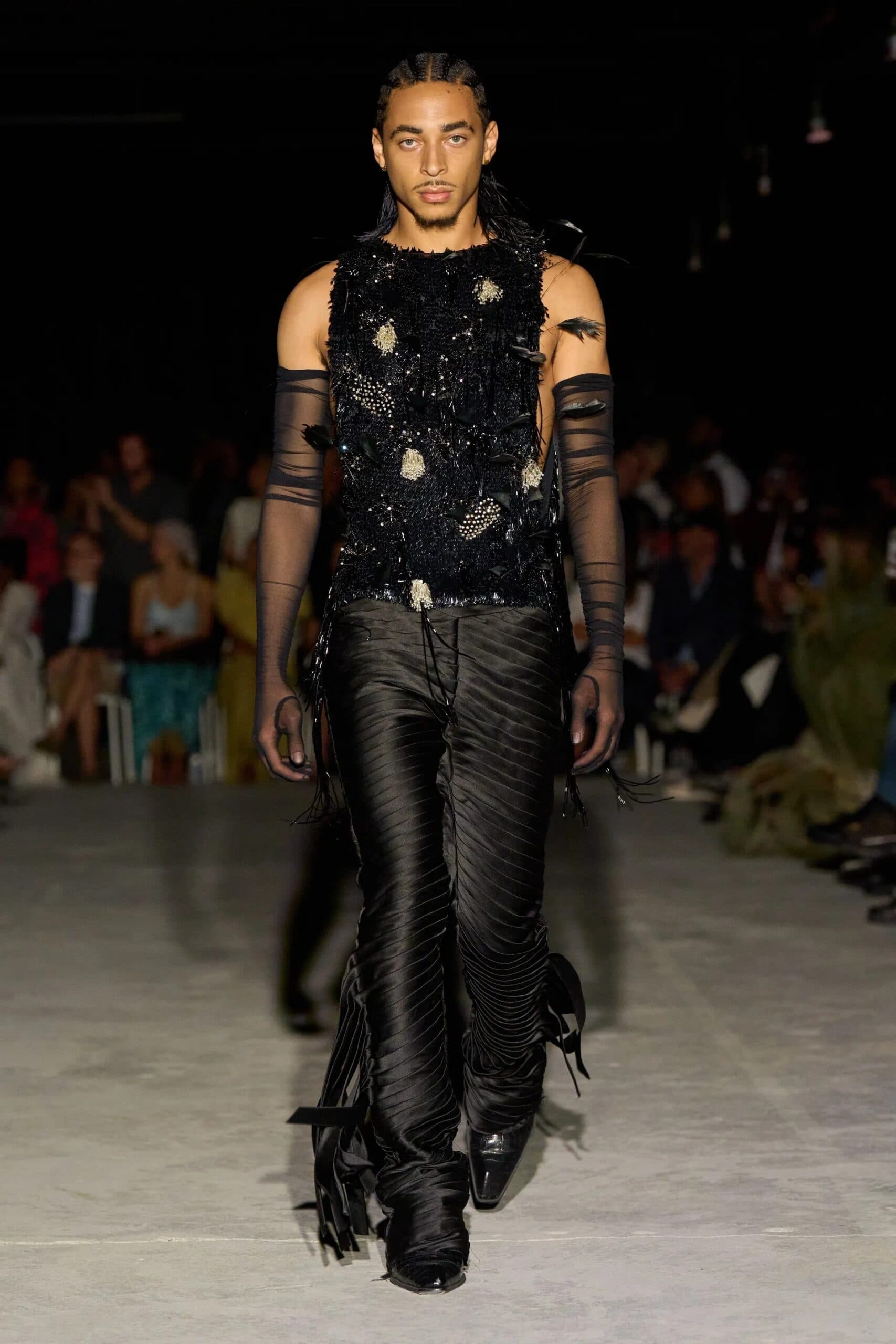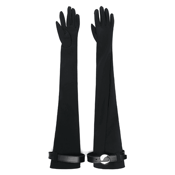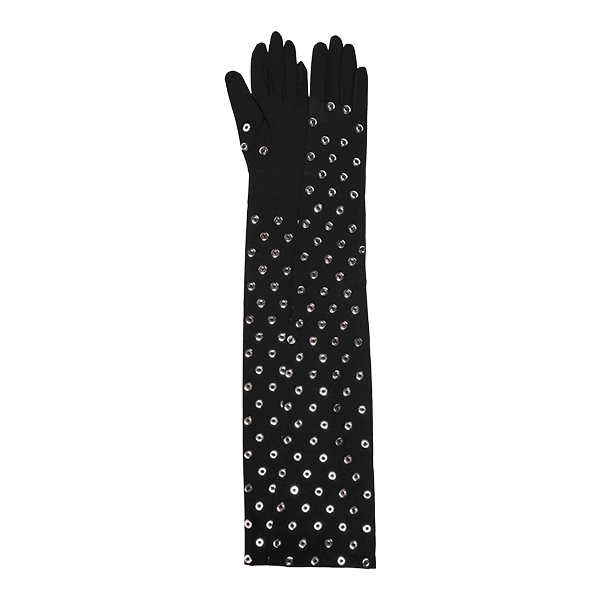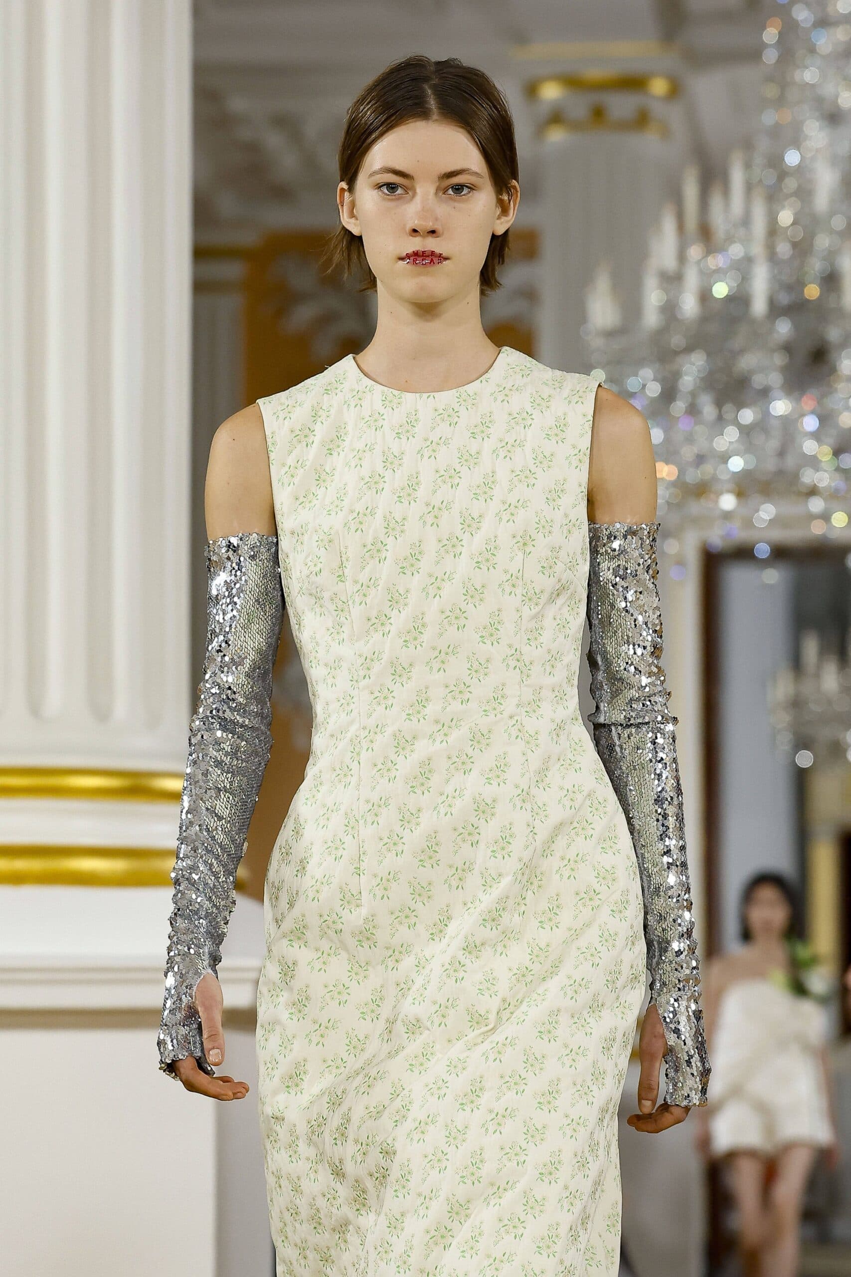 Other designers incorporated the accessory into their Spring/Summer 2026 collections, too: Luar with mesh opera gloves to add to the overall edge of the show and garments, Simone Rocha with silver sequined fingerless opera gloves to add shine to the girly coquette aesthetic that the brand is known for, and Balenciaga with a white leather pair to contrast an otherwise monochrome look.