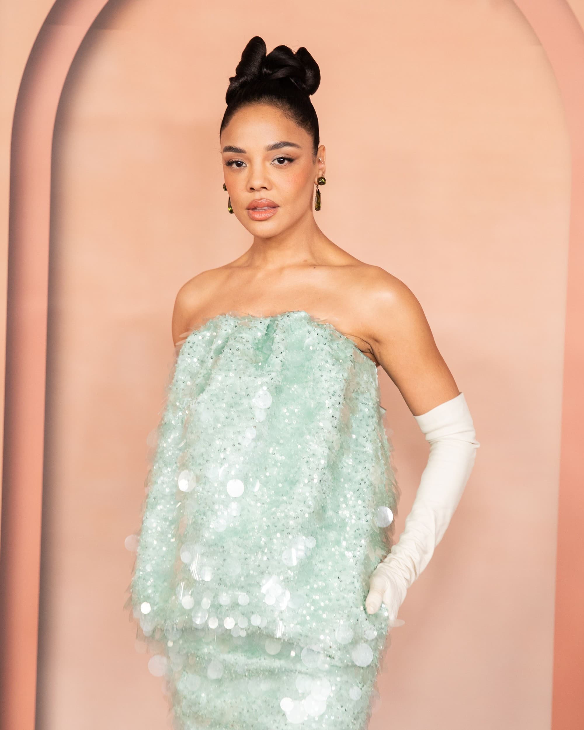 Actress Thomasin Mckenzie stepped onto the red carpet of the premiere of her film, The Testament of Ann Lee, in a white embroidered and embellished Rodarte gown featuring a tulle bust trim and a coordinating choker necklace. The look, however, was contrasted by a pair of black velvet opera gloves, which added an unexpected contrast, gave a nod to the past, and got me thinking: are opera gloves the easiest way elevate any outfit? The answer is an absolute yes.