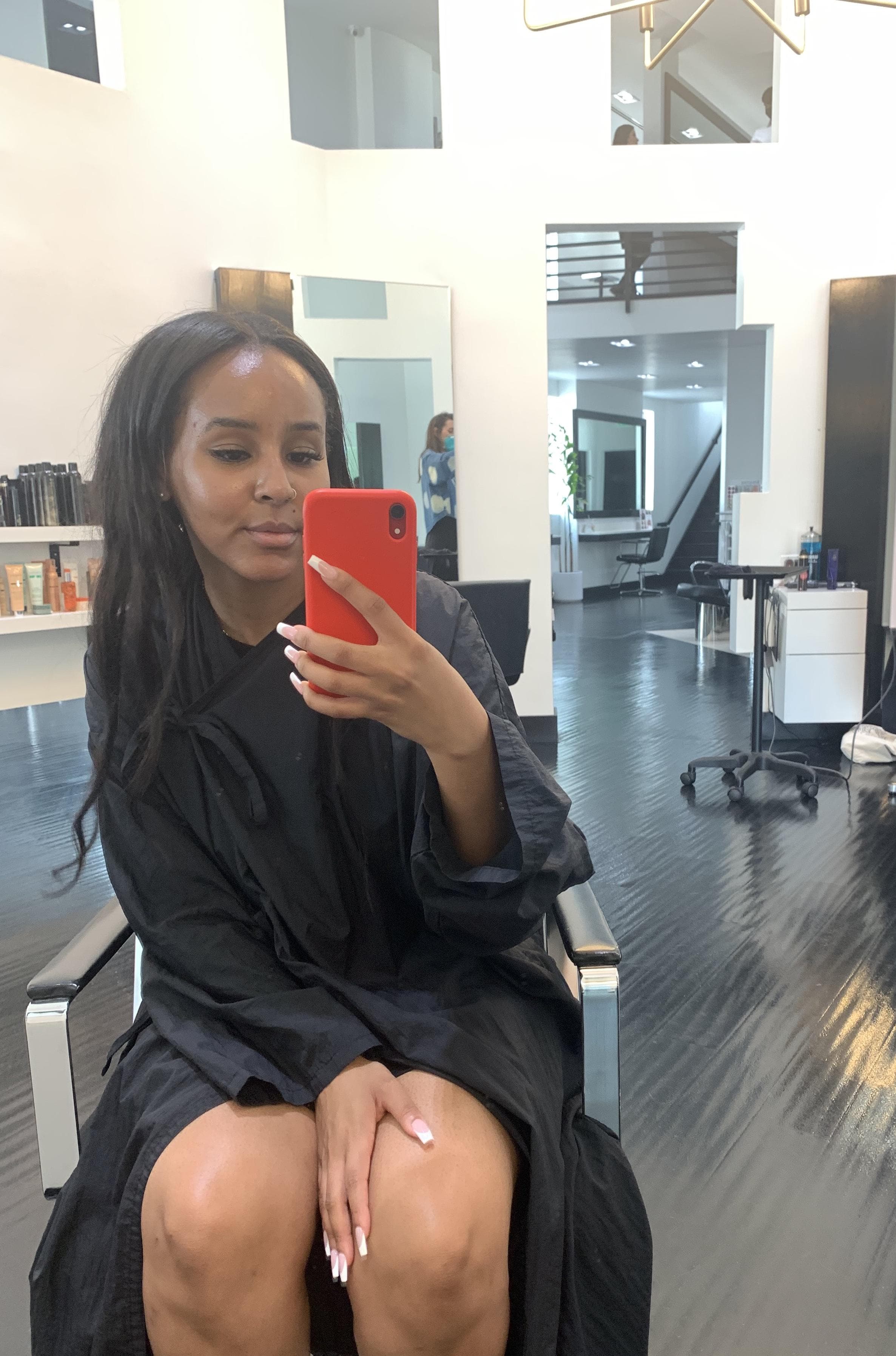 Me at Sassoon Beverly Hills pre-Dry Texturizing Spray. Photos: Courtesy of Sumiko Wilson