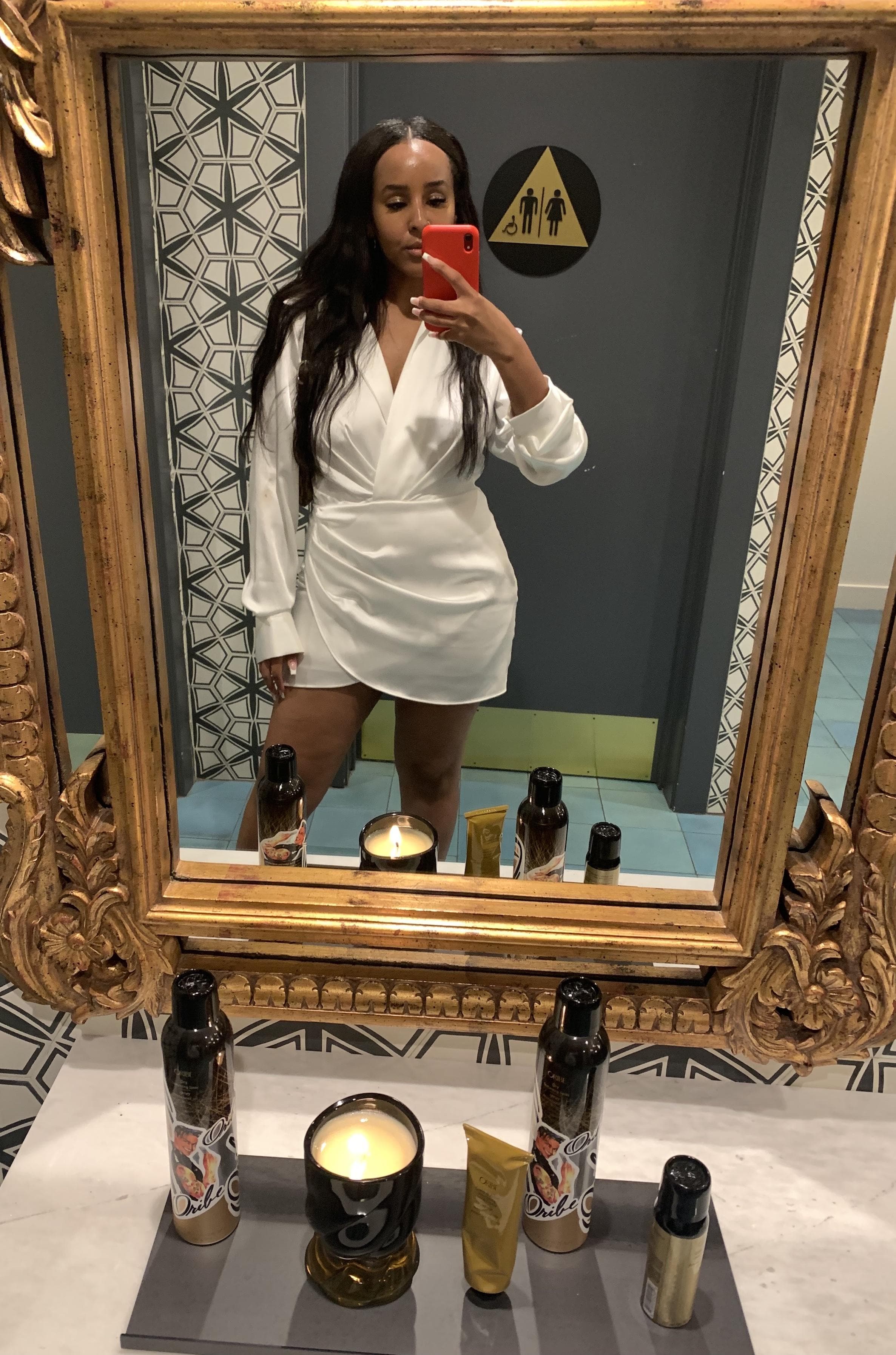 A few hours and spritzes of Dry Texturizing Spray later.I was lucky enough to have a stylist at Sassoon Beverly Hills do the honor of spritzing my hair with Oribe's Dry Texturizing Spray. Before I left the salon, she gave me a generous (but not gratuitous) spritz before I headed outside for a night on the town in sunny (and sweltering) West Hollywood. Typically, I would veer away from styles where my hair is out and down during nights out because of how uncooperative it can be, but because I wanted to put this spray to the test, we settled on a loose, Kardashian-inspired wave. When in L.A., right? I didn’t notice a drastic difference right away, but when I arrived back at my hotel to get ready, I was impressed by the lift, body, and fragrance that my hair had with just one spritz—this is likely thanks to the zeolite crystallines, which soak up dirt, oils and odor. My curls looked tousled and lived-in in a way that felt very "native Angeleno." As they settled in throughout the night, instead of falling flat, they relaxed into beachy waves so good I couldn’t help but take public bathroom selfies (something I typically find far too cringey to indulge in).