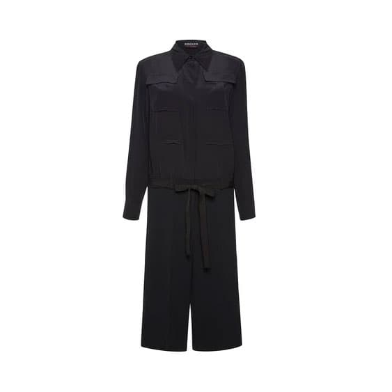 to pay you, in the case of job interviews and client meetings). Anything with minimal wrinkle action is the ideal here—or at the very least, something that in a pinch, can be steamed out via hanging close to the shower. A one-piece jumpsuit, usually in a neutral hue, that saves valuable bag space and keeps your tote from being heavier is the easiest fix. Add a light jacket (bonus points if it's one you can wear on the way to the gym), fancy flats or a mid-height block heel, and no one will clue into the fact that the hour prior to sitting down at your desk you were close to tears on a spin bike.