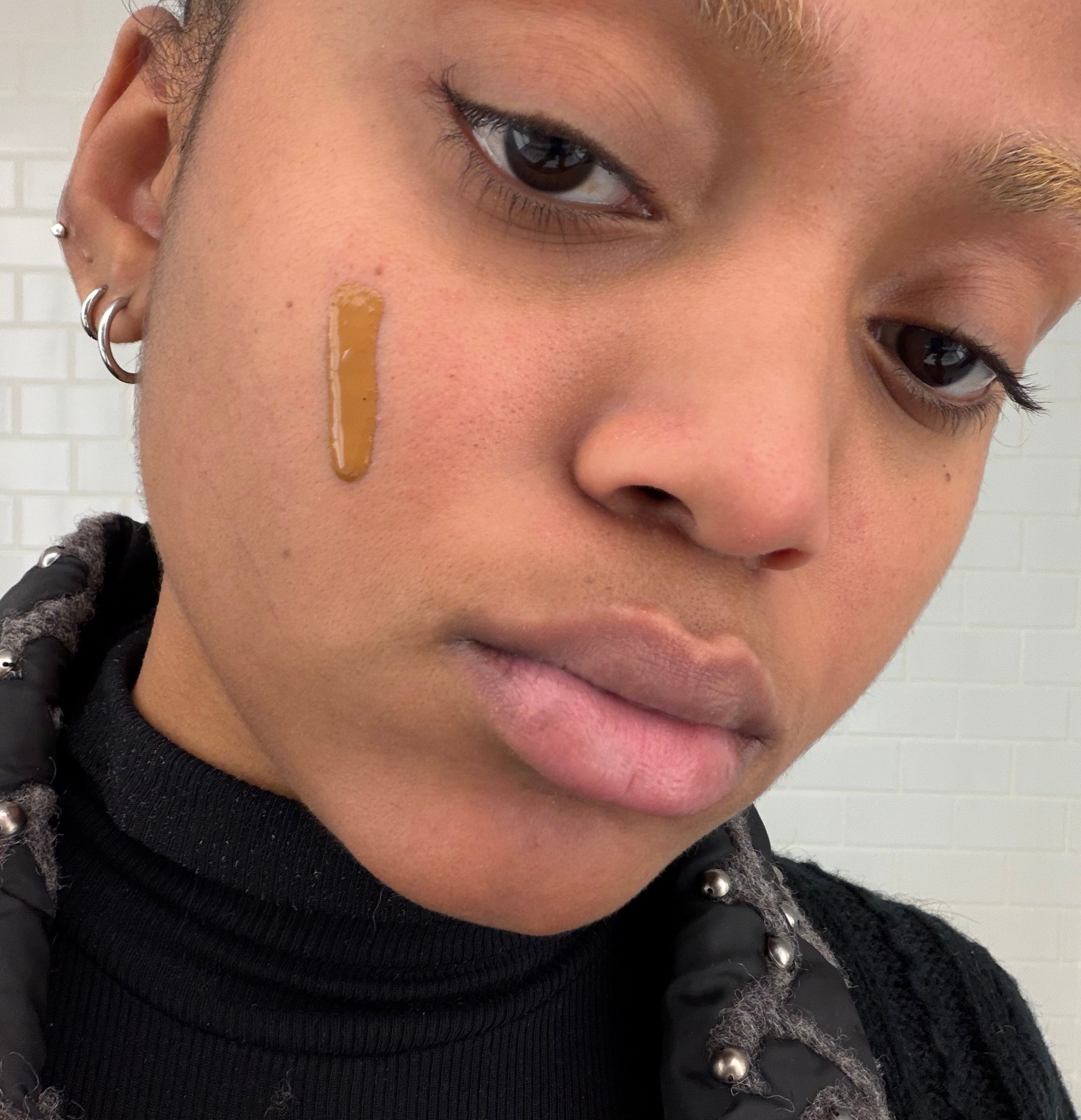 I was immediately drawn to the mess-free application system, fully eliminating the need to get your hands dirty. The application system made it easy to build up the finish I wanted because I was in control of how much product was squeezed out. The consistency is liquid-y, which made for easy blending, but also lent itself to dripping on my shirt in one occasion as I wasn't quick enough with my Beautyblender. The product felt silky and lightweight on my face and didn't contribute to or exacerbate my dryness. Instead, my skin felt smooth all day, at least relative to how it usually feels on a day-to-day basis. By the end of one of my days of testing, a decent amount of coverage still remained. (I'm not the only one who was pleased with the result; celebrity makeup artist Katie Jane Hughes recently left a rave review on TikTok, too.)