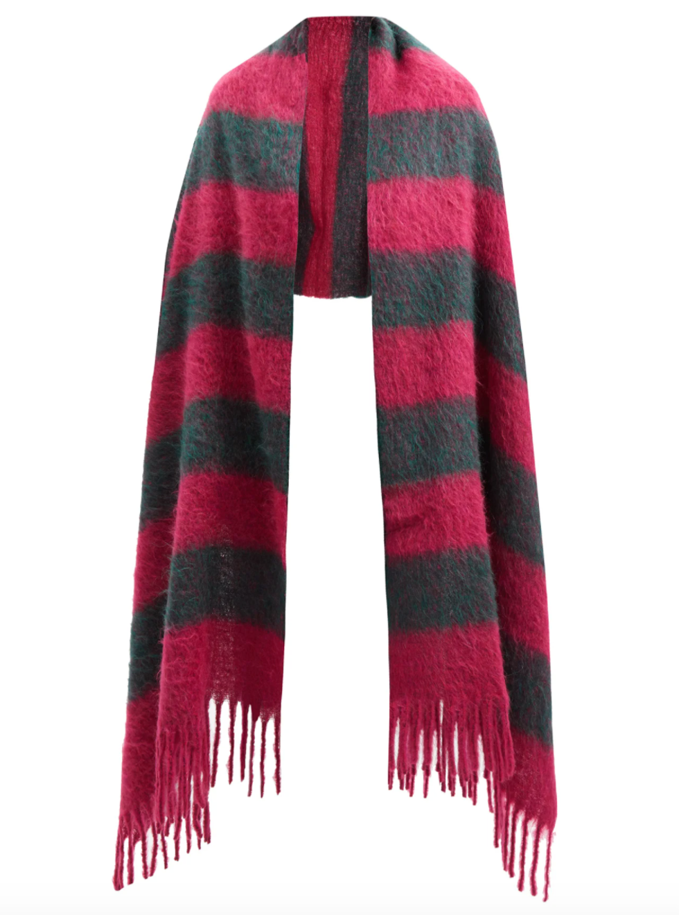 The options are endless and ensure both warmth and comfort. Perhaps you prefer a cape-style wrap for a sophisticated way to brave the cold. Maybe you gravitate towards an oversized scarf that serves its purpose around the neck but can also be spread to effectively fill the void a blanket would. You might even opt for an all-out poncho that you can hide beneath all day, whether indoors or out. Regardless of which style you choose, continue scrolling to shop our edit of oversized scarves that serve the purpose of both blanket and accessory.