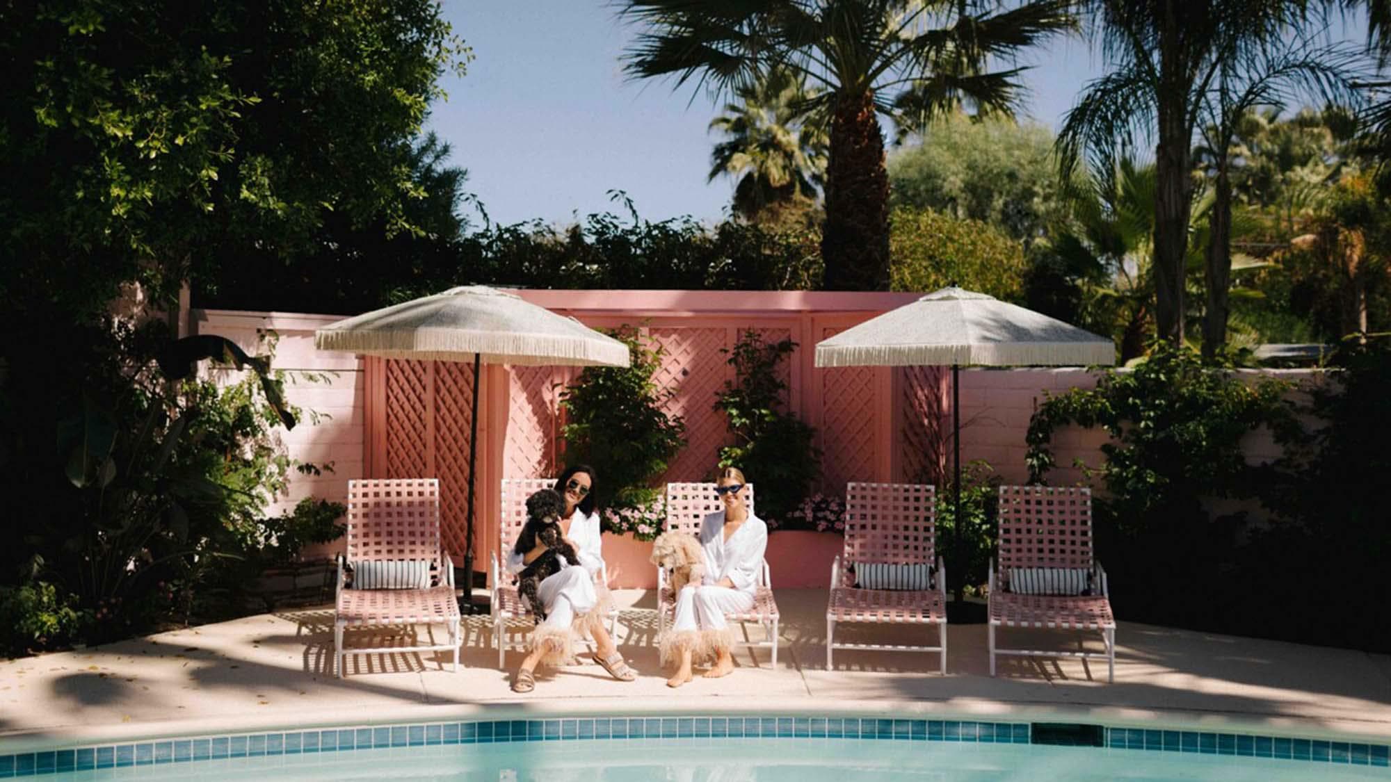 When you’re designing in an area with such a strong visual, architectural identity as Palm Springs, it seems a waste not to take advantage. “[The city] itself is a great source of inspiration,” she continues. “You feel like you’ve traveled back in time when driving through the neighborhoods and the architecture makes you feel like you’re constantly on the set of a film.” The sister design duo utilized that retro, pop-art nod in many of their creative decisions, invoking vibrant wallpaper, wicker furniture, and exotic animal prints. The sisters are revealing all the details behind their creative process as they give us a further glimpse inside the space—just in time for Valentine’s Day.
