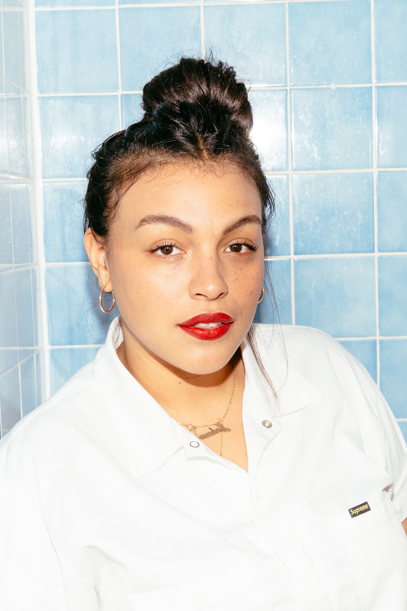"One of my beauty essentials is starting clean! I'm obsessed with showers. Some of my favorite products are Dermalogica Microfoliant, Armani foundation, #skinfetish003 by Pat McGrath Labs, Dr Hauschka Clarifying Oil and Rosebud Salve on your eyes, lips and cheeks."