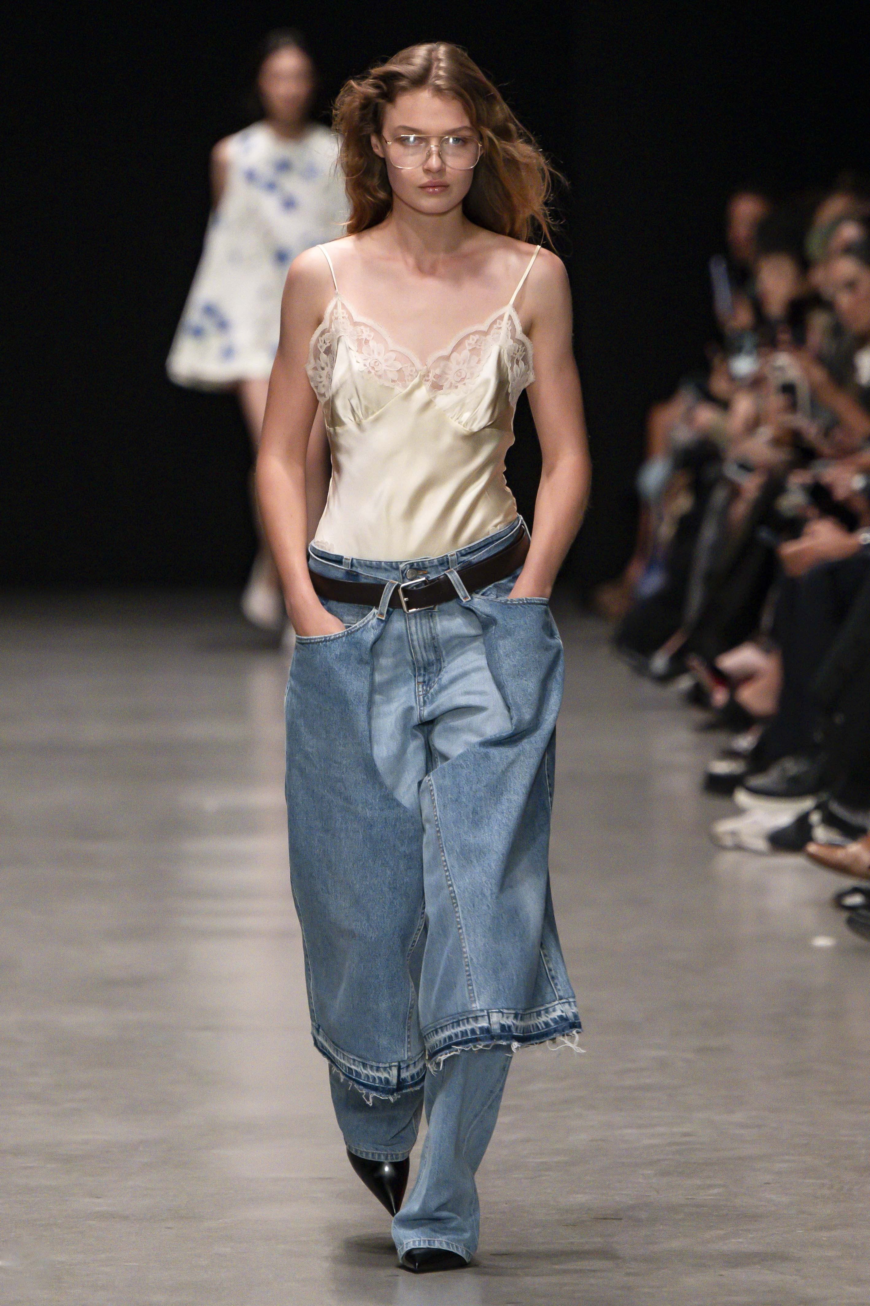 Vaquera SS26 Getty ImagesThe jeans and a nice top theory is hardly something we have to explain to the masses, and in Paris this week, designers have been bringing the tried and true philosophy to the runways in an elevated way. At Dior, Jonathan Anderson sent a series of backwards wool coats with relaxed, slouchy jeans down the runway. For Stella McCartney’s SS26 collection, low slung jeans were paired with silk camisoles, intricate jackets, and crisp button downs, and over at Vaquera, denim was paired with t-shirt layered with lace bras and tops feating giant rosettes.