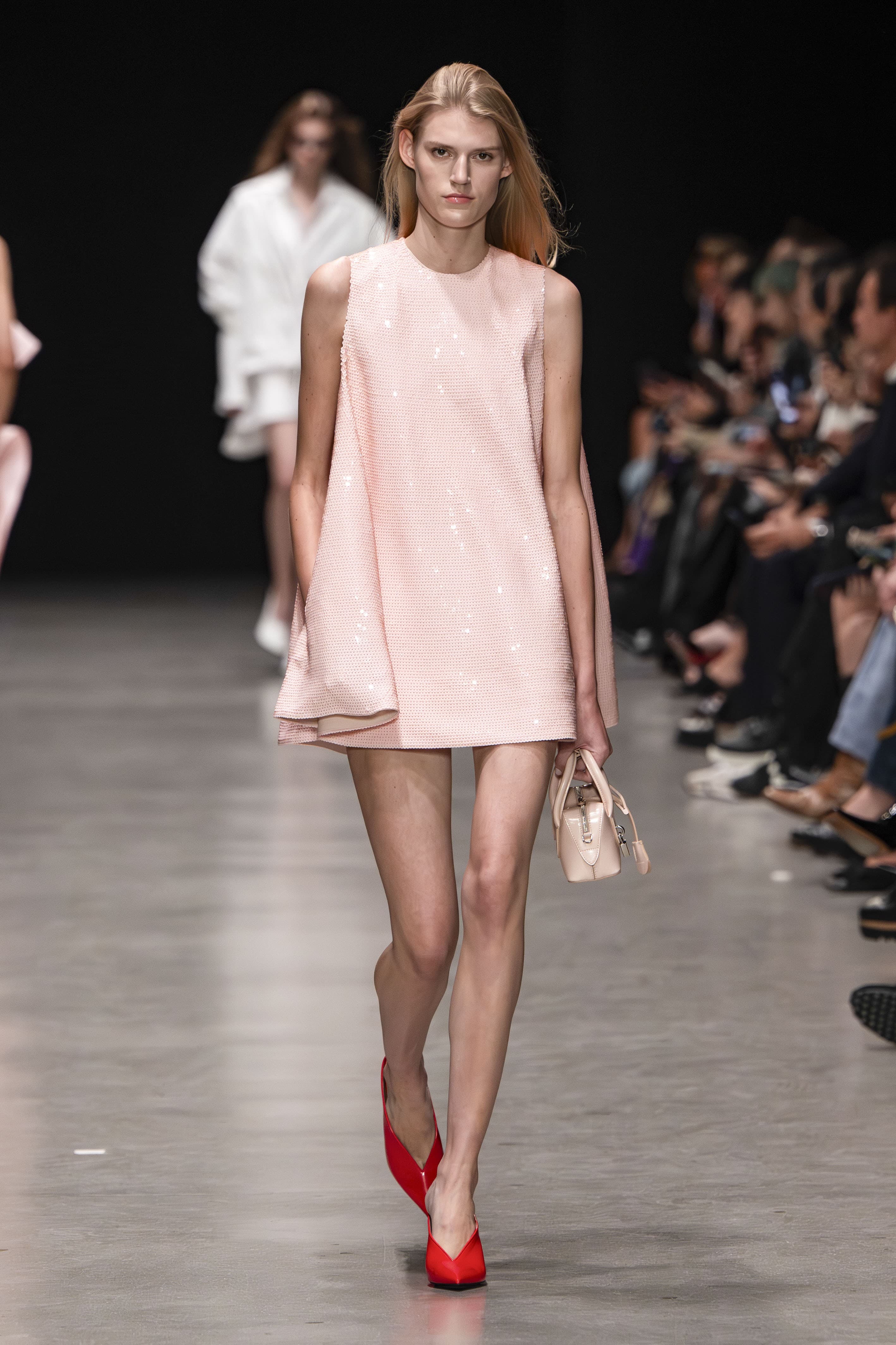Tom Ford SS26 Getty ImagesThe color of choice in Paris this season has seemingly been ballerina pink, softening collections and adding a sense of calm and femininity into runway moments that particularly stand on their own two feet, which has been an interesting balance to witness. At Louis Vuitton, ballerina pink underscored the collection. There were pale pink bubble skirts, mohair culottes, draped, velvet printed silk dresses, and embellished shearling gilets with tie waists. Stella McCartney also wasn’t one to shy away from baby pink in tactile textures. Oversized faux fur coats, mini dresses with shearling trims and sequins featured aplenty, while at Dior Anderson experimented with a sweet pink denim skirt and matching bag, and at Tom Ford, Ackermann sent baby pink suits out.