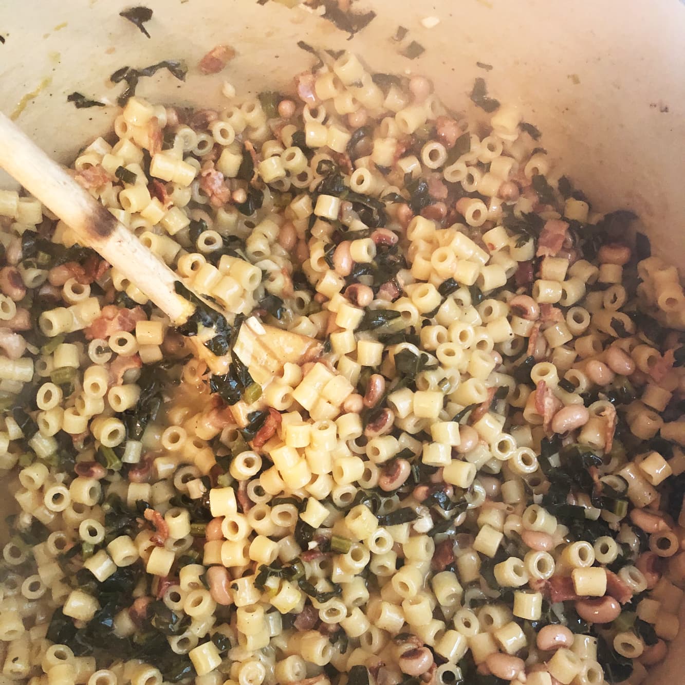 Pasta fagioli is the ultimate Italian soul food that comes together fairly quickly for a hearty and comforting meal. This recipe is super versatile when you have limited supplies: You can make it with basically any dried or canned beans, any type of pasta you might have lying around (if you only have long pasta, you can simply break it into small pieces), and fresh or frozen greens.