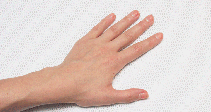 1. Paint four fingers of each hand with two coats of white polish, and paint two coats of blue on the remaining nails.