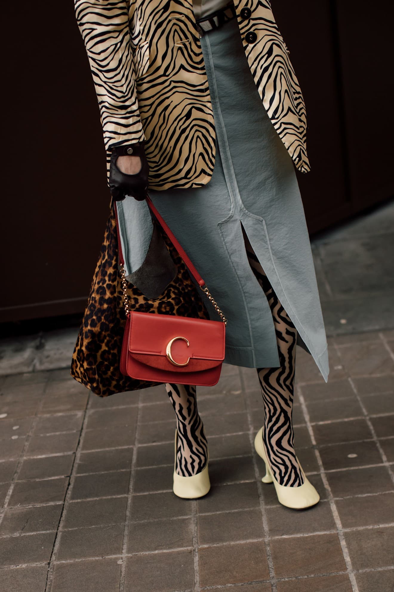 LaunchmetricsShow-goers and fashion lovers wholeheartedly embraced this trend, too. We spotted all forms of fashion tights on the streets of London, with animal print tights being a standout pattern. In one look, zebra-printed tights perfectly coordinated a blazer while simultaneously contrasting with a leopard-print bag; in another, tiger-printed tights served as the statement-maker of an otherwise black ensemble.