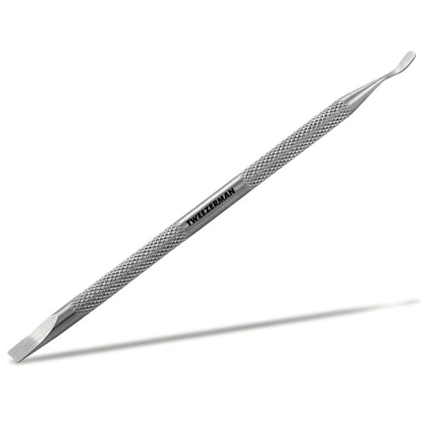 into the skin around my nails for a few minutes. After that, I use a cuticle pusher to gently push cuticles back and scrape away any dry skin. Run the tool under the nail, too, to eliminate any dead skin that may be hiding.