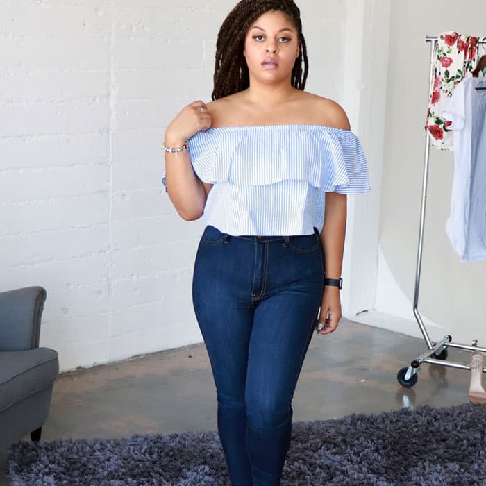 “I also have a long torso and an hourglass figure (my hips are 15 inches bigger than my waist), so finding jeans with a tall enough rise that fit my curves is nearly impossible! I wear dresses (particularly swing dresses) instead, because they accentuate my waist and I don’t have to worry whether they will fit my hips or not,” she shares with Bustle.