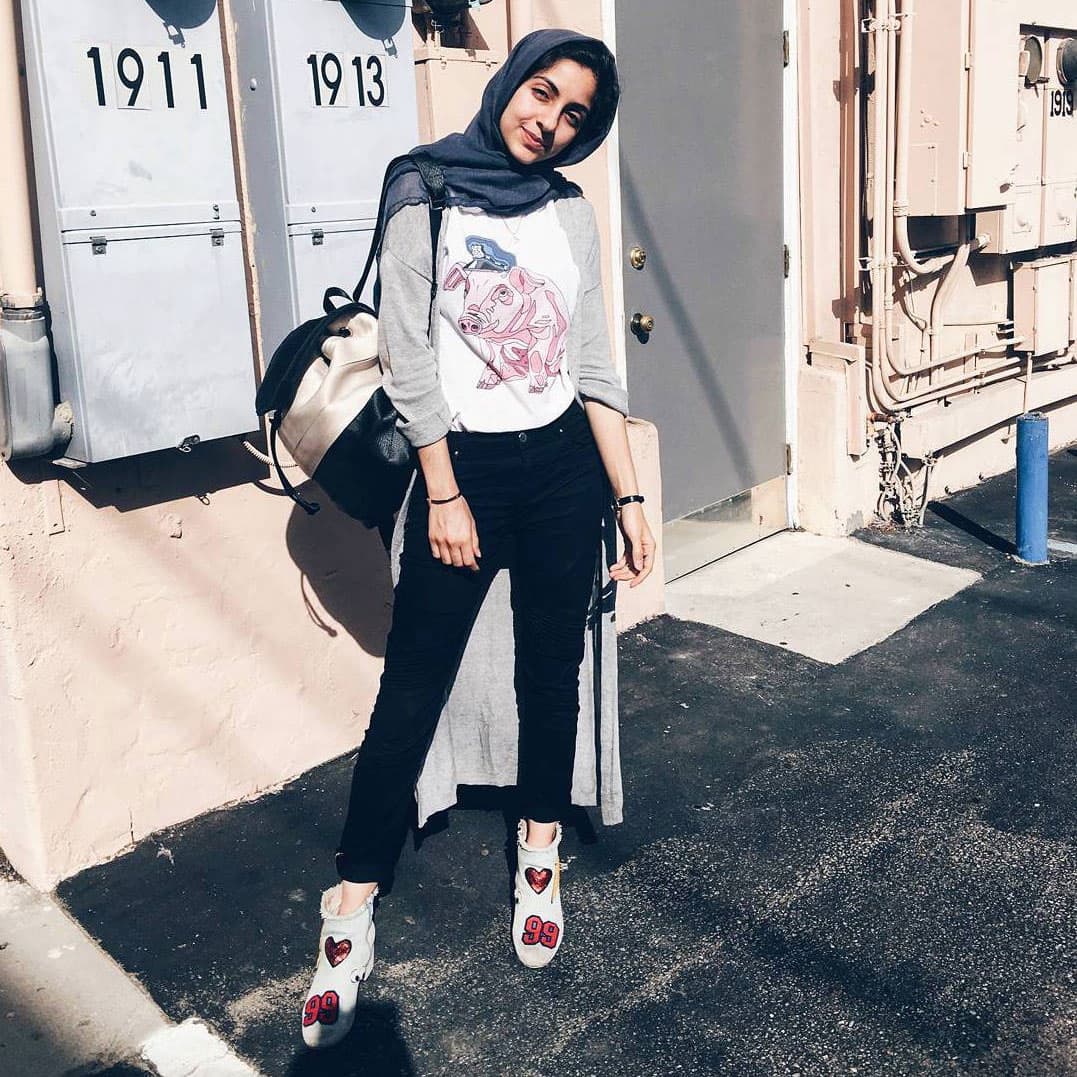 For Hoda Katebi of JooJoo Azad, she skips the denim because she thinks there are more fun things to wear when it’s time to create a popping outfit. “I know Americans have always had this sort of love affair with denim (even though jeans actually originated in India as the uniform of the working class and were only popularized in the USA because of Black civil rights revolutionaries), but I’ve never really been a fan. Why wear a faded blue when you can wear black? Or bright, clashing colors?” she asks. “I guess anytime I ever considered wearing jeans with an outfit, I’ve ended up deciding to swap them out with something that would make the look more fun or interesting.”