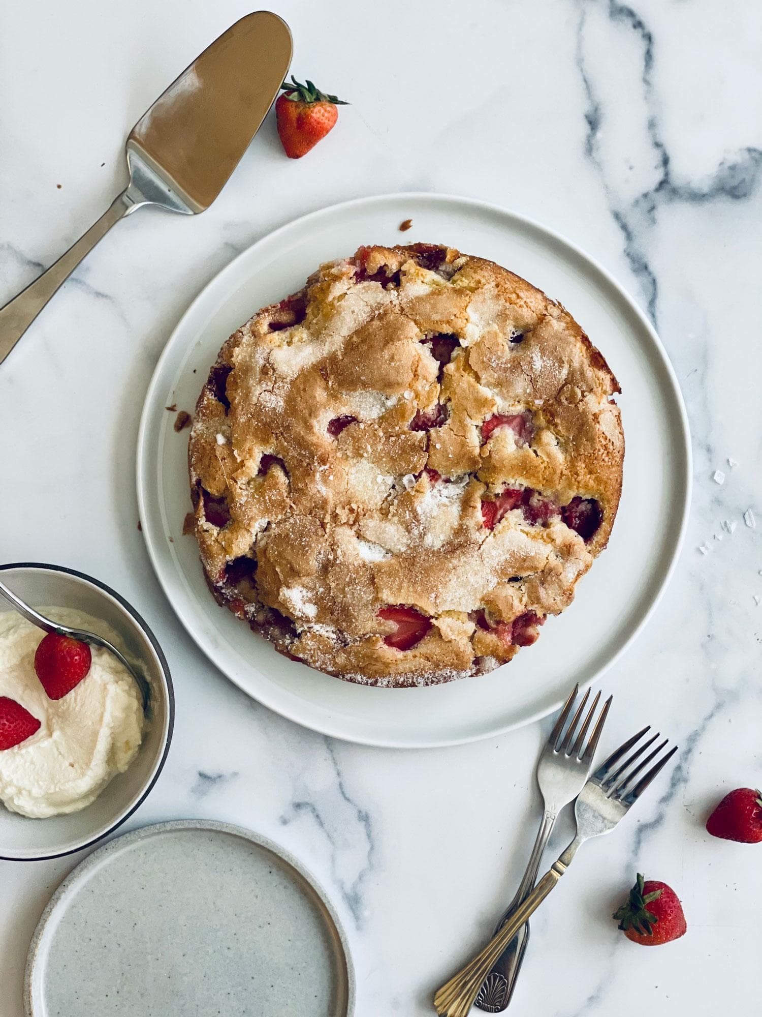 Strawberry Skillet Cake with Honey Whipped Ricotta