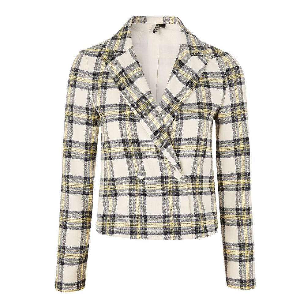 It's likely we'll always lust over shoes we can't walk in and fancy, gala-like gowns we'll never wear. But when it comes to our fall wardrobe? We've been leaning toward practicality—and it seems we're not alone. According to Polyvore, searches for wardrobe staples are up, with items like denim skirts and ruffle wrap dresses on the rise. Yet the real winner when it comes to seasonal shopping? Plaid blazers, aka a term that's increased in popularity by 650%...in just one year!