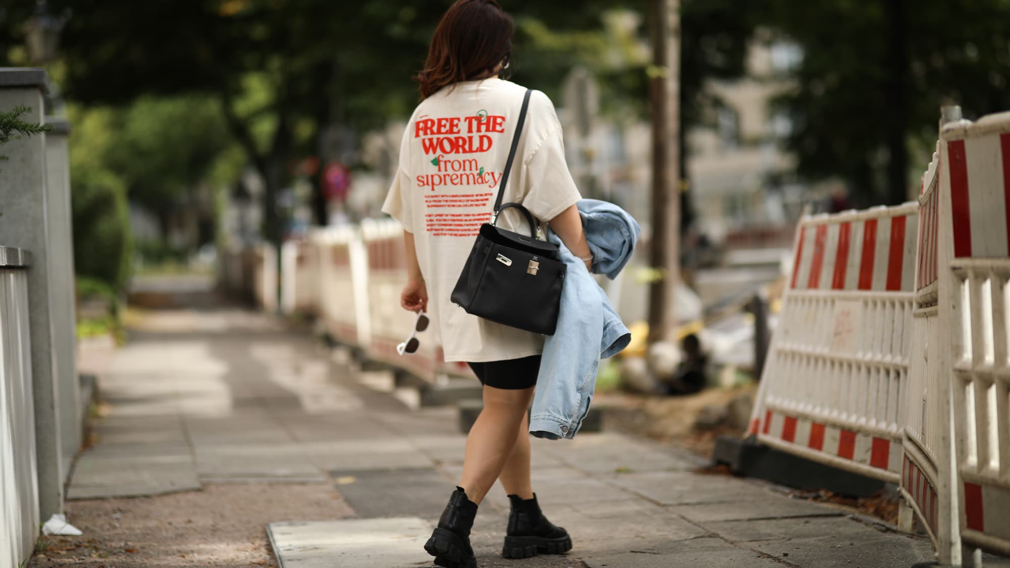 Richards, who discussed trends like high-waisted denim shorts, graphic t-shirts “that look like they were purchased at a boardwalk gift shop,” and chunky sneakers in her InStyle article, says it’s not just an aesthetics thing. “I don’t think plus-size women are permitted the virtue of doing anything without being ridiculed or chastised or even silently criticized,” she says. “For a long time, I performed femininity way more than I wanted to because I felt like all the traditional fashion indicators of femininity—belt it at the waist, create a slim line, wear a dress in an unassuming color because you’re already big—could make a larger body acceptable to the world.” Athleisure, of course, bunks some of those indicators of femininity: Bike shorts don’t come with belts to accentuate the waist; loose joggers don’t hug your curves; an oversize hoodie, by definition, isn’t a silhouette that allows for “clean lines.”