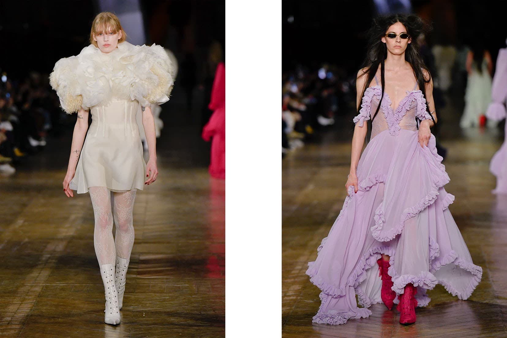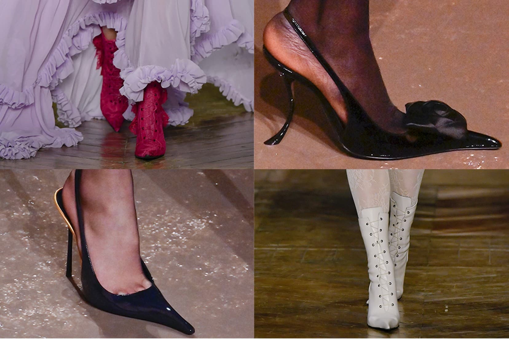 March Jacobs F/W25 Getty ImagesComing directly at us down the Fall/Winter ‘25 runways were some very long points at Marc Jacobs, McQueen, Acne Studios, Saint Laurent, and more. Renaissance and medieval themes have been, ahem, plaguing the runways of late, and the shoe department is no exception. This was most evident at Alexander McQueen and Marc Jacobs. The latter's Sean McGirr sent a series of damask lace and embellished leather lace-up boots with toe points of gargantuan proportions down the runway, while Jacobs opted for pumps with oversized, plush satin bows and toes that extended up to five inches in front of the model’s feet, which felt particularly medieval 14th and 15th century Europe coded.