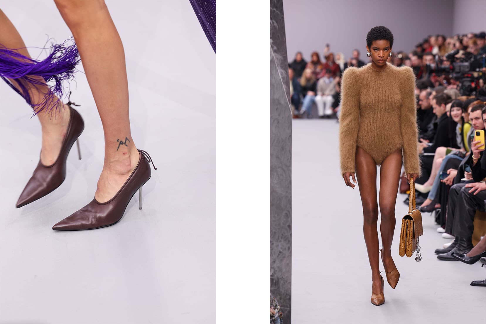 Alexander McQueen F/W25 Getty ImagesElsewhere, more modern interpretations of elongated points came via Saint Laurent, where the homage to ‘80s revival was underscored by extremely c*nty pumps, reserved for those of us who’d rather have bleeding feet than a lacklustre footwear day. At Acne Studios: a hint of olden times with a moccasin-like leather upper that gave way to another elongated point, and a stick-thin metal heel to bring it into the contemporary realm.