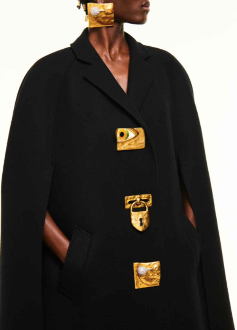 "Holiday dress code calls for statement outerwear. This Schiaparelli cape is so surreal, you can skip the coat check." —Linda Fargo, Senior Vice President Of Women's Fashion and Store Presentation Director, Bergdorf Goodman