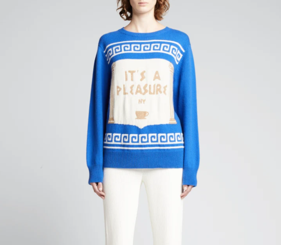 "A cheeky cashmere sweater to make you nostalgic for the city that never sleeps. Available exclusively at Bergdorf Goodman!" —LF