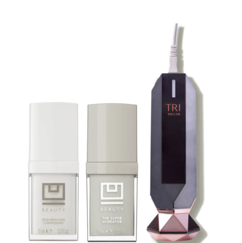 "An exclusive bundle featuring the Tripollar STOP Vx device and U Beauty's Resurfacing Compound and Super Smart Hydrator created by founder Tina Craig. The Stop VX is a multi-functional facial device that uses Radio Frequency technology to reduce lines and wrinkles, lift and tone the jawline area and improve overall skin texture, while the Resurfacing Compound and Super Smart Hydrator exfoliate, brighten, and hydrate the skin post-treatment." —MA