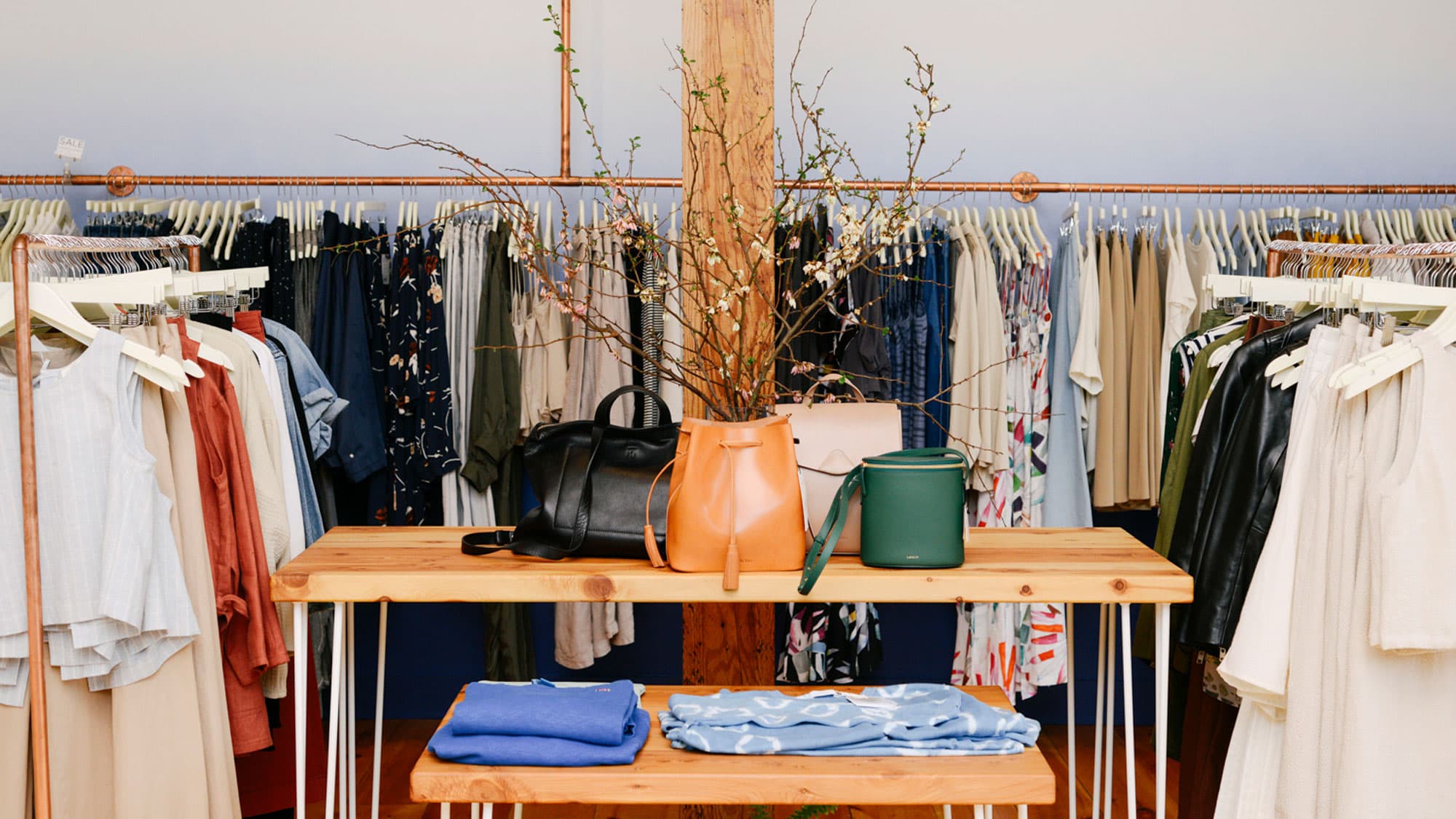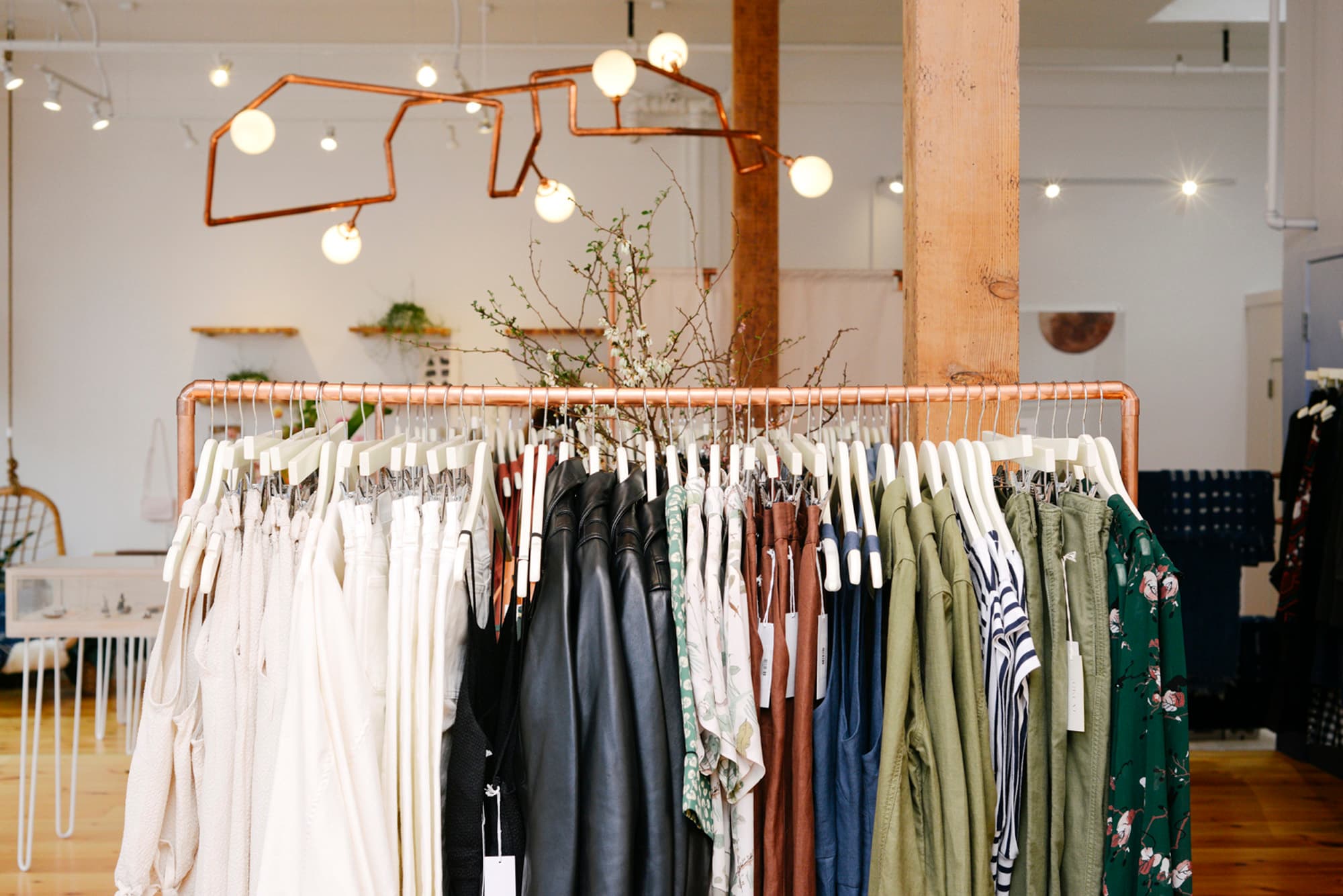 ]. I really like soft, easy, well-made, really relaxed pieces, and that sort of bright, welcoming, warm vibe that I think is more prevalent in— I would say specifically L.A. retail and a lot of California makers. I’m just really inspired by that whole scene right now. There wasn’t a great place to shop that kind of style in Portland that I was aware of. My idea was to bring very easy-to-wear, relaxed pieces to stuff that was super well made that would last in your closet for a long time. I try and focus on a lot of independent makers. I used to work for Mara Hoffman, and she’s one of my favorite people in the world, and I think what she’s doing with her brand is beautiful and she’s telling a great story. Also I want to find stuff that’s not already oversaturated in Portland. Like I didn’t want to open a store and pull all the same lines that everyone has.”