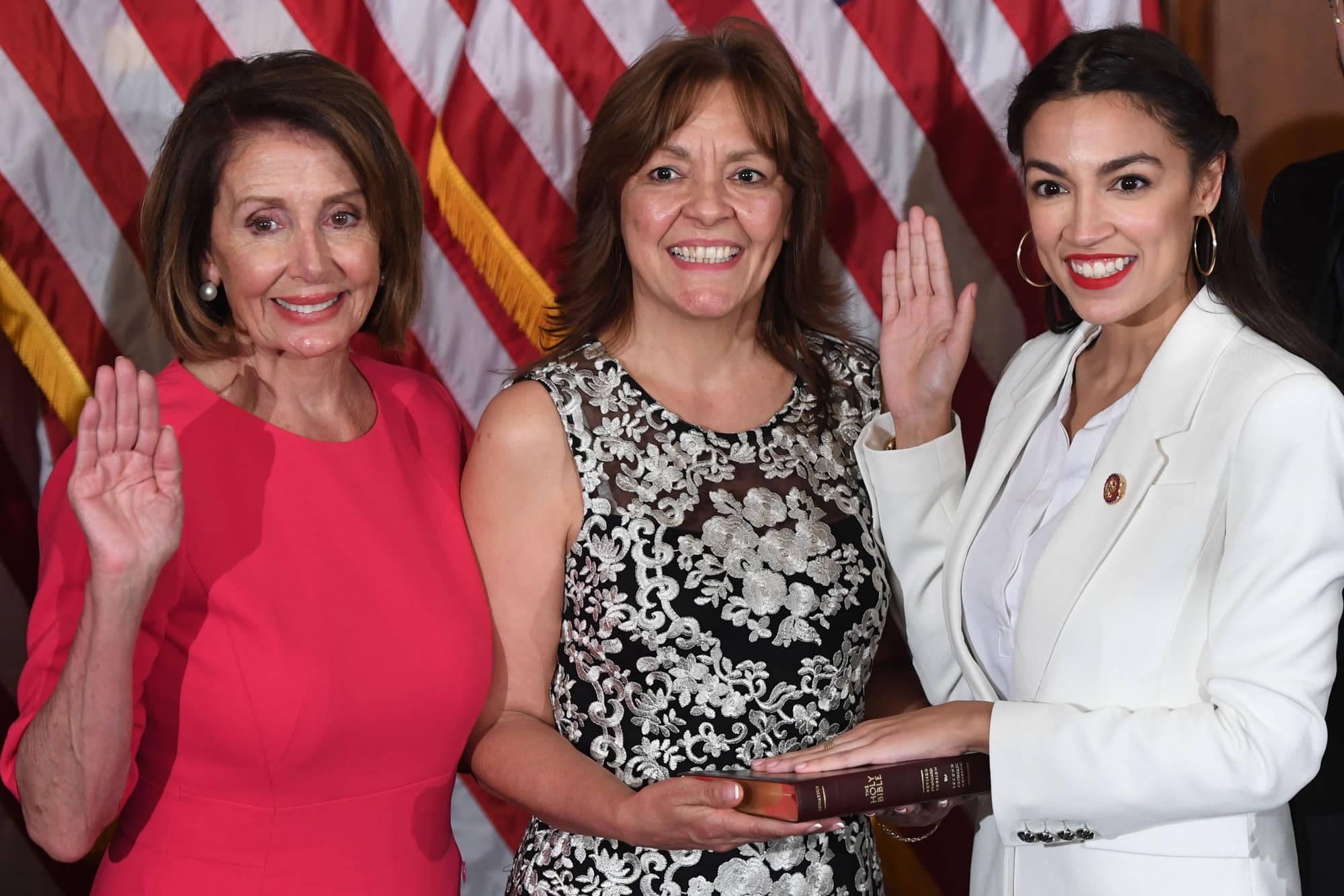 was sworn in as the youngest-ever congresswoman, she wore all white to honor the suffragettes. Not only that, but she also sported red lipstick inspired by Sonia Sotomayor and even added a pair of hoops so that the “next time someone tells Bronx girls to take off their hoops, they can just say they’re dressing like a congresswoman.” Unlike many politicians who run the opposite direction, Ocasio-Cortez has harnessed the power of fashion and is using it to her advantage.