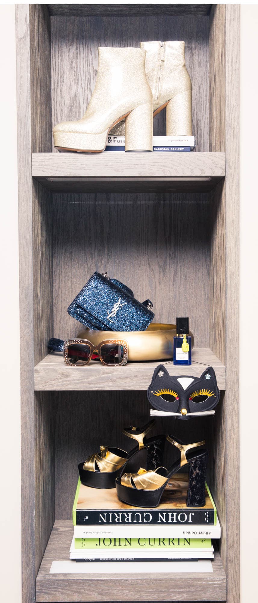 From top: Boots, Marc Jacobs, marcjacobs.com. Bag, Saint Laurent, ysl.com. Sunglasses, Gucci, gucci.com. Heels, Saint Laurent, ysl.com.