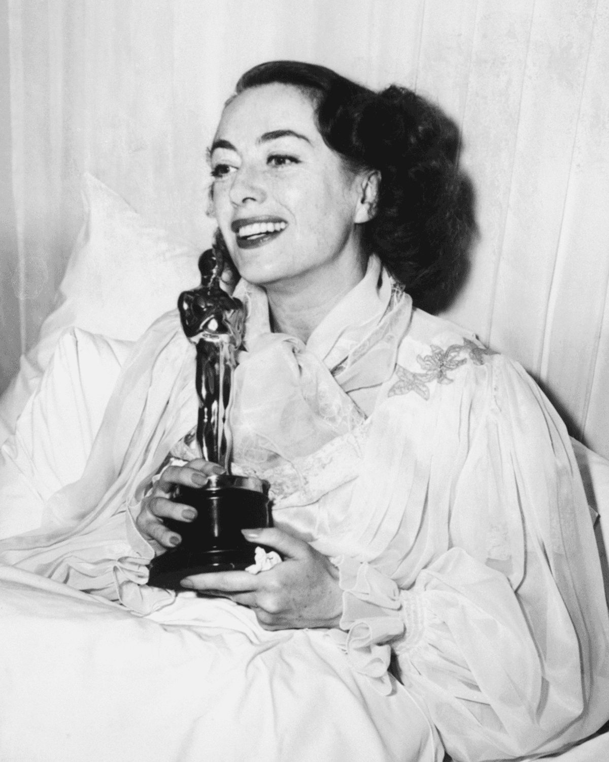 1. Joan Crawford Accepting her Oscar in Bed (1946)