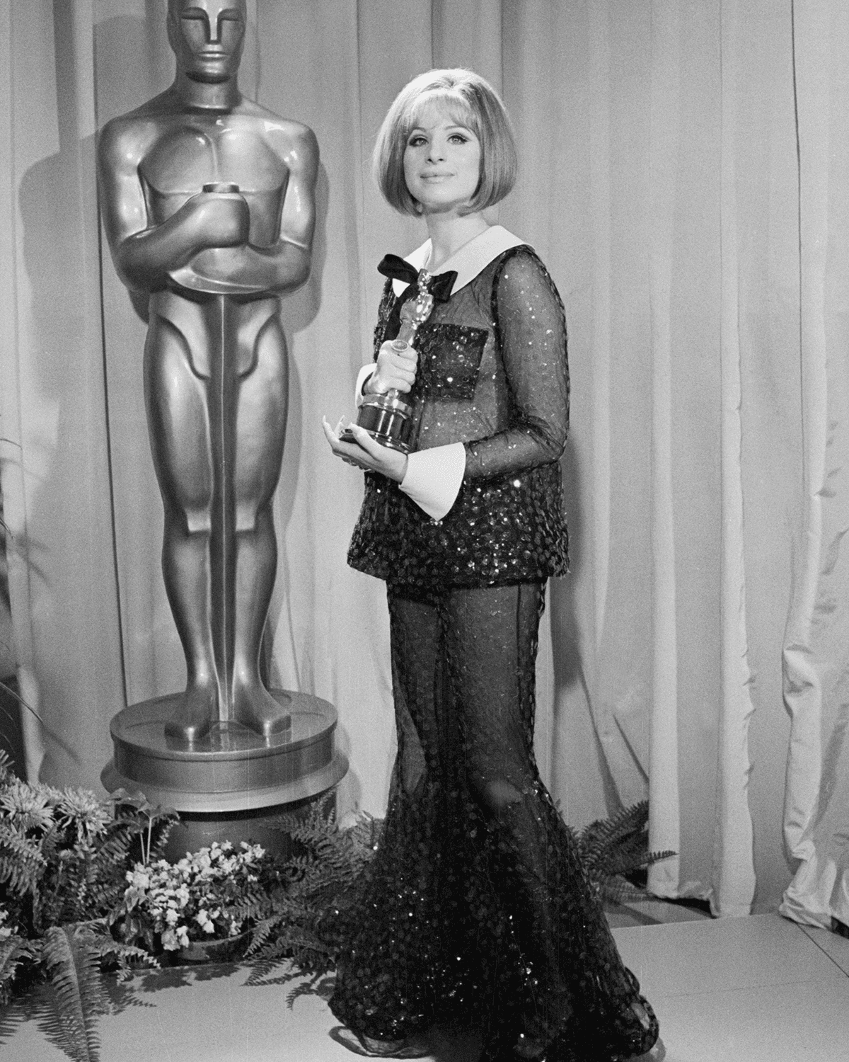 Photo: Bettmann/GettyReceiving exactly 3,030 votes each, this was the first exact tie in a principal category in Oscar history. Winning the title of “Best Actress,” Katherine Hepburn—on her 11th Oscar nom for The Lion in Winter—shared the award with Streisand for her first on-screen role in the musical Funny Girl. Hepburn was a no-show at the ceremony (it’s okay, she won Best Actress the year before, too), allowing the 26-year-old Streisand to take center stage. In addition to the historic tie, Streisand’s outfit was one of the most controversial and iconic outfits in Oscar history. The Arnold-Scaasi-nude-illusion ensemble made her the first actress to wear pants to the Oscars, and the first woman to win in pants shortly after. After tripping a little on her sequined bell bottoms on the way up to the podium, photographers got a shot from behind that was all over the tabloids the next morning. Even though the outfit was lined, once the flashbulbs went off, it appeared you could see the diva’s entire bum.