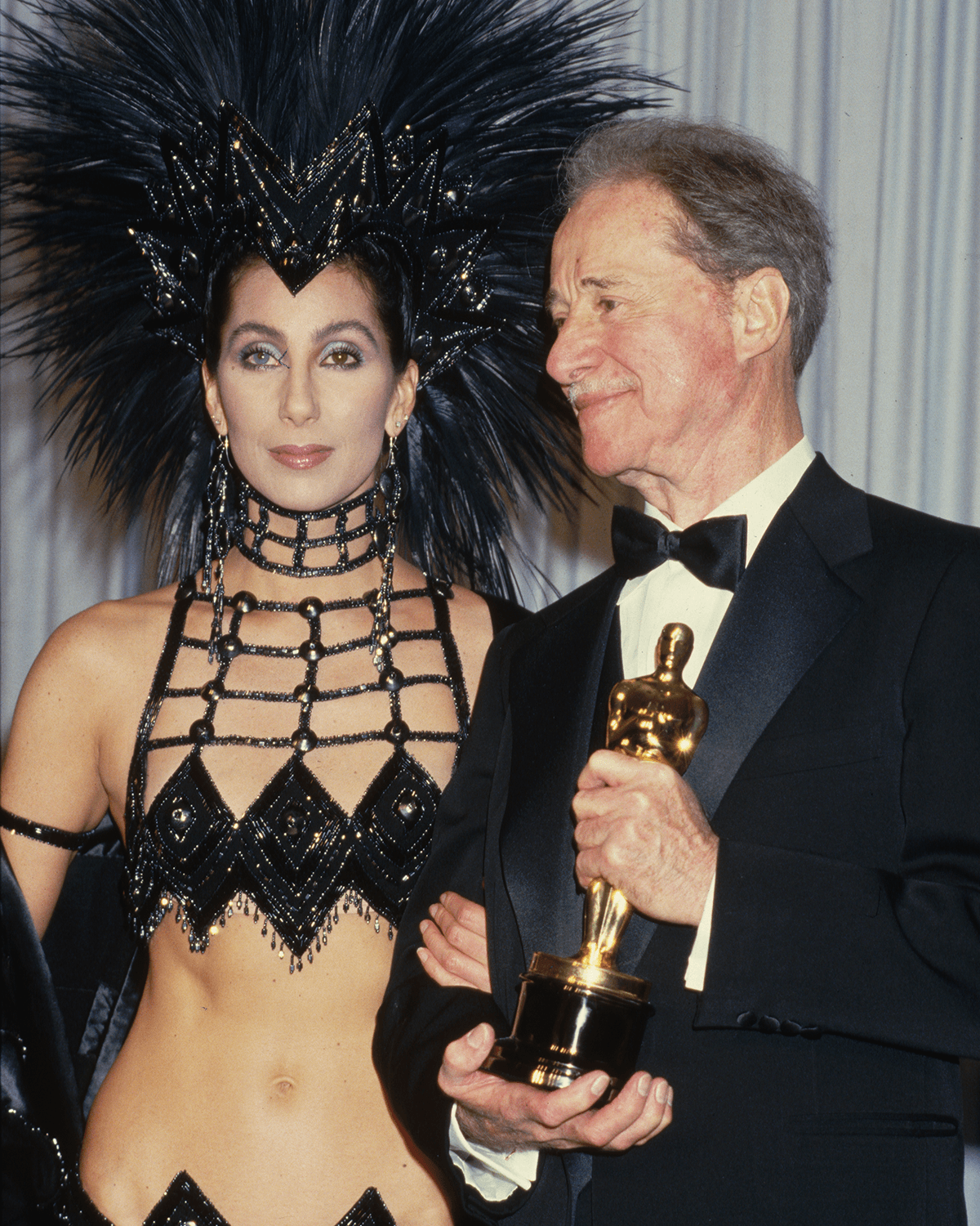 Photo: Eugene Adebari/GettyCall it what you want—a stunt, outrageous, a costume—Cher knew exactly what she was doing. Feeling snubbed the year previously for not winning best actress in Mask, she teamed up with the “Sultan of Sequins” Bob Mackie, and they met at Tom Cruise’s apartment to discuss the design. Did you know Cher and Tom Cruise used to date? Google it. Anyways, Cher told Mackie, “I don’t want to look like a housewife in an evening gown.” With this Showgirls-inspired getup complete with a giant, feathered headpiece, Mackie did not disappoint.