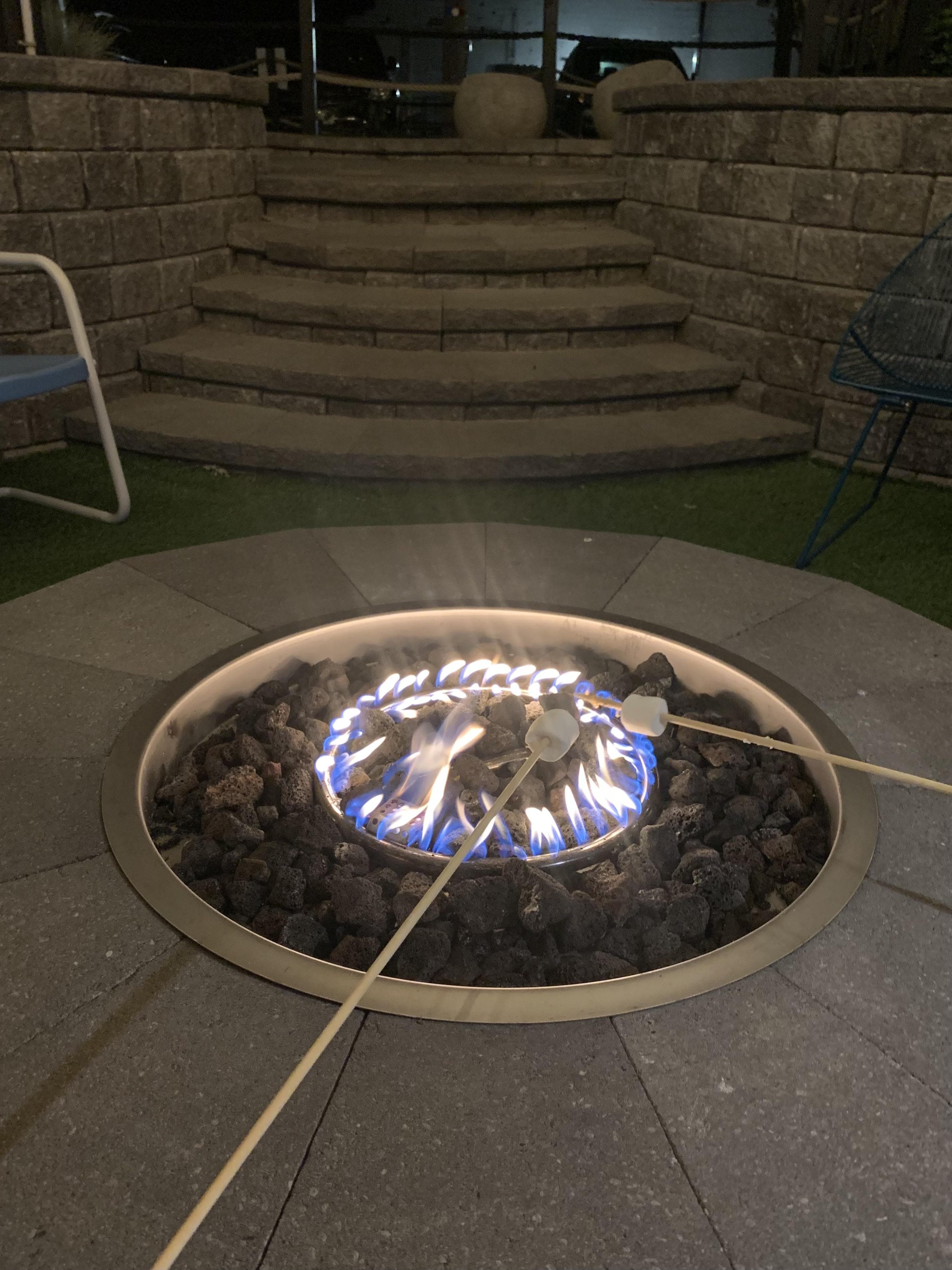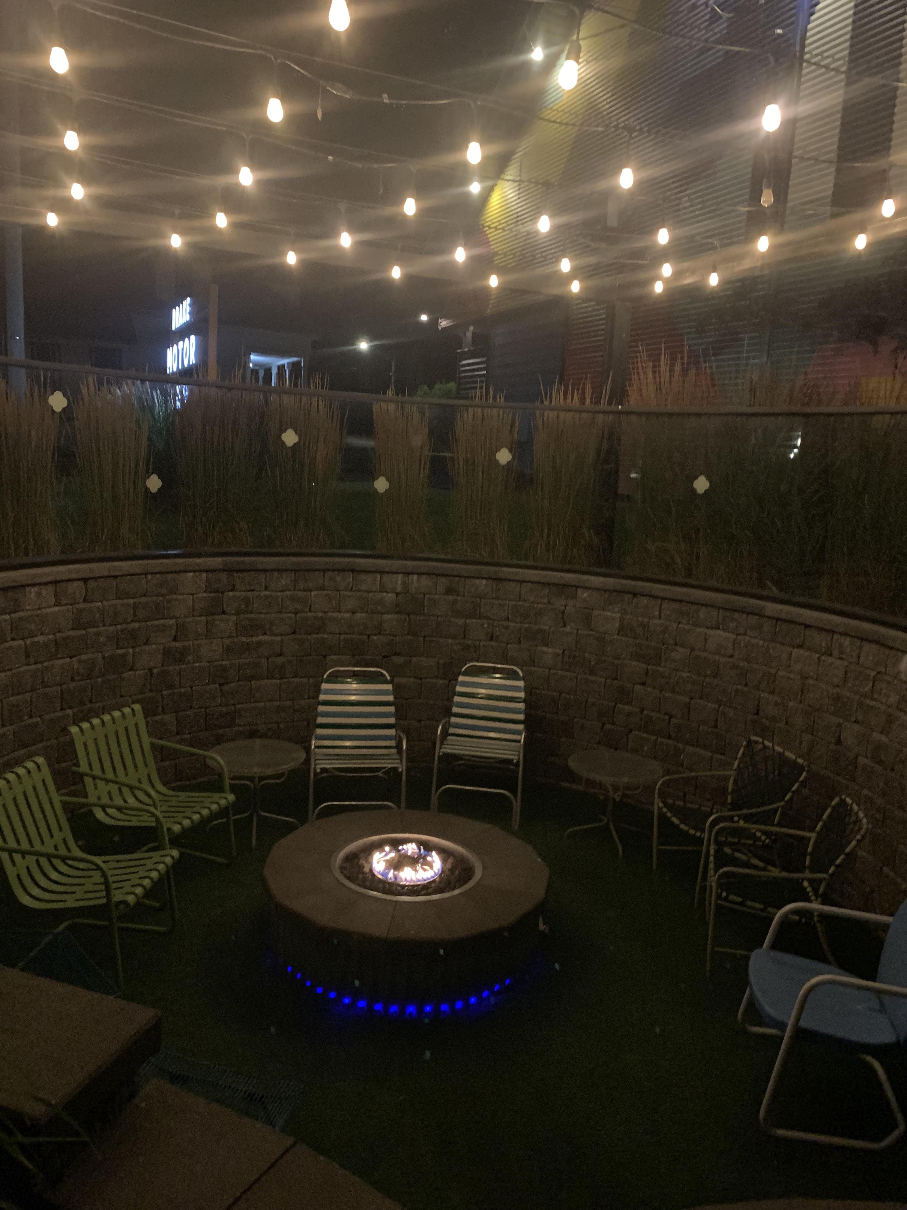 Wanting to lean into our summer camp sensibilities, after dinner we stopped by the front desk on the Devonshire's property to pick up s'mores kits. Then we headed back to the Motor Inn to lounge by the communal fire pit located just steps outside of our room. The fire pit was in a '70s-style sunken conversation pit underneath romantic string lights and was entirely electric—survival skills be damned.
