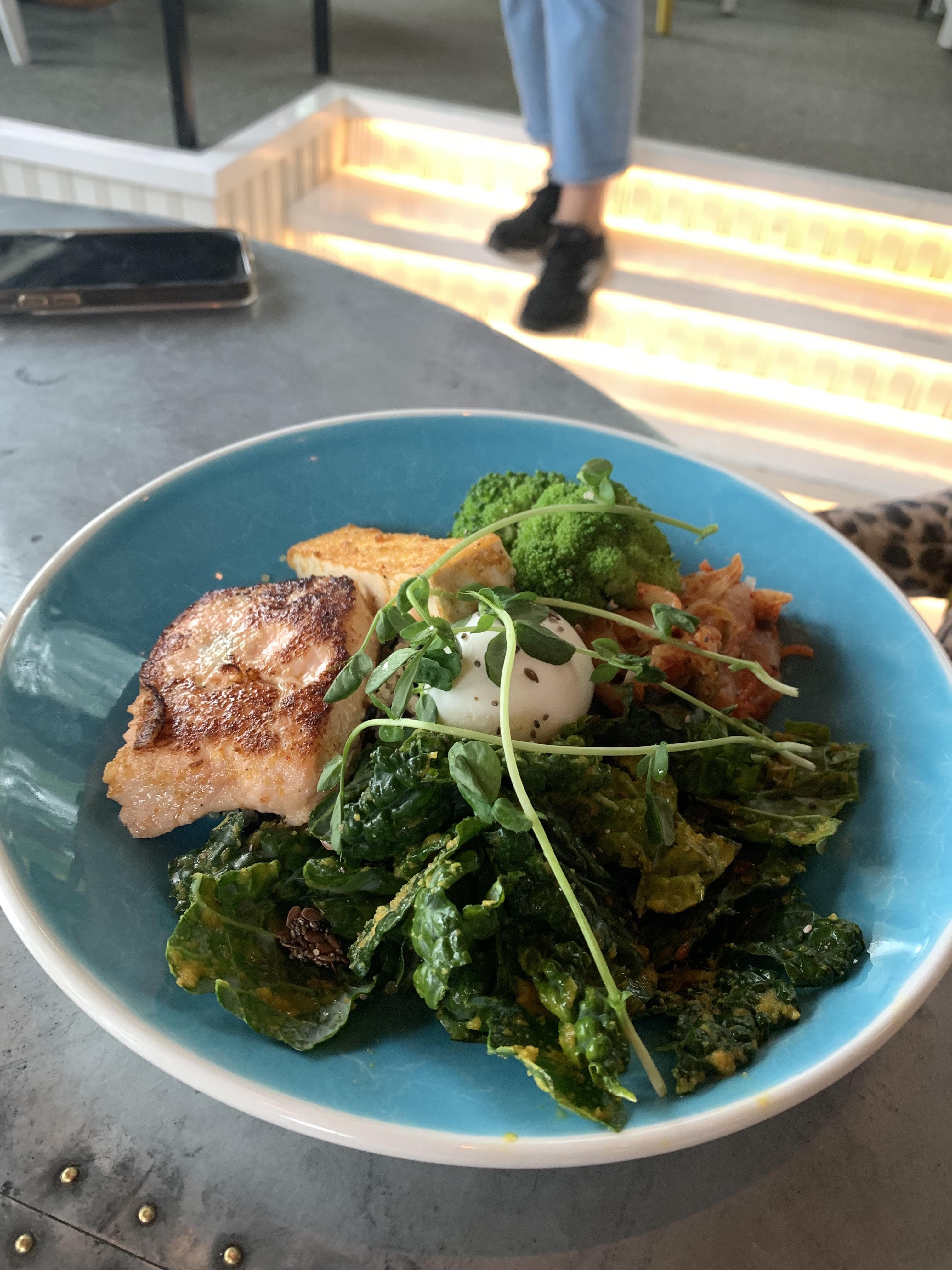 Dinner at the Devonshire was a delight—we even went back for lunch the next day. The restaurant is facing the water and if you happen to catch it at sunset (we got to our table right as the sun was setting) it's beyond picturesque. The menu leans into the lakeside vibes with seafood offerings like roasted octopus and a lobster roll, which I ordered (and inhaled) on our first night there. The next day at lunch we tried a salmon bowl with kale, kimchi, and a coconut-y vinaigrette that was so good I tried to replicate it once we arrived back home.
